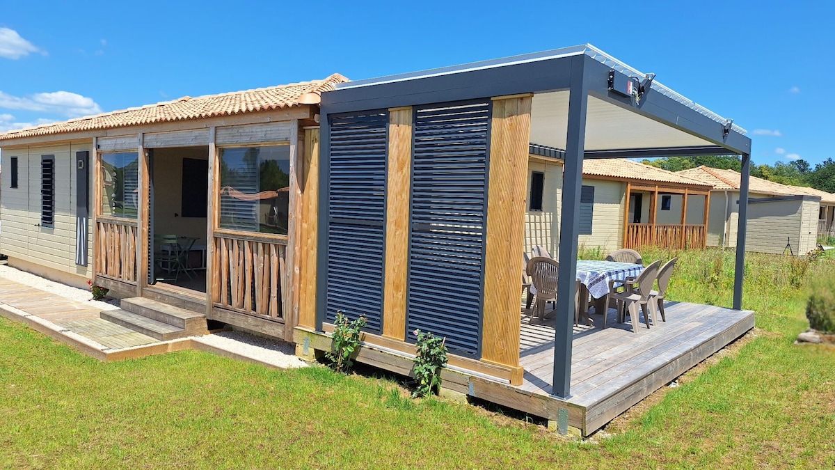 Vores bungalow har en storslået udsigt over dammen. Der er omgivet af natur i 70 ha fyrreskov. Opdag Landes' charme. Med fuglesang eller frøer. Indkvarteringen i en chalet tilbyder al komfort i et optimeret og varmt rum. En grillplade til at grille på terrassen. Et vaskeri i landsbyen. Gratis adgang til de 3 swimmingpools, 6 tennisbaner, fodboldbane, rugby, badminton, en golfbane. Du kan komme overalt til fods eller på cykel.