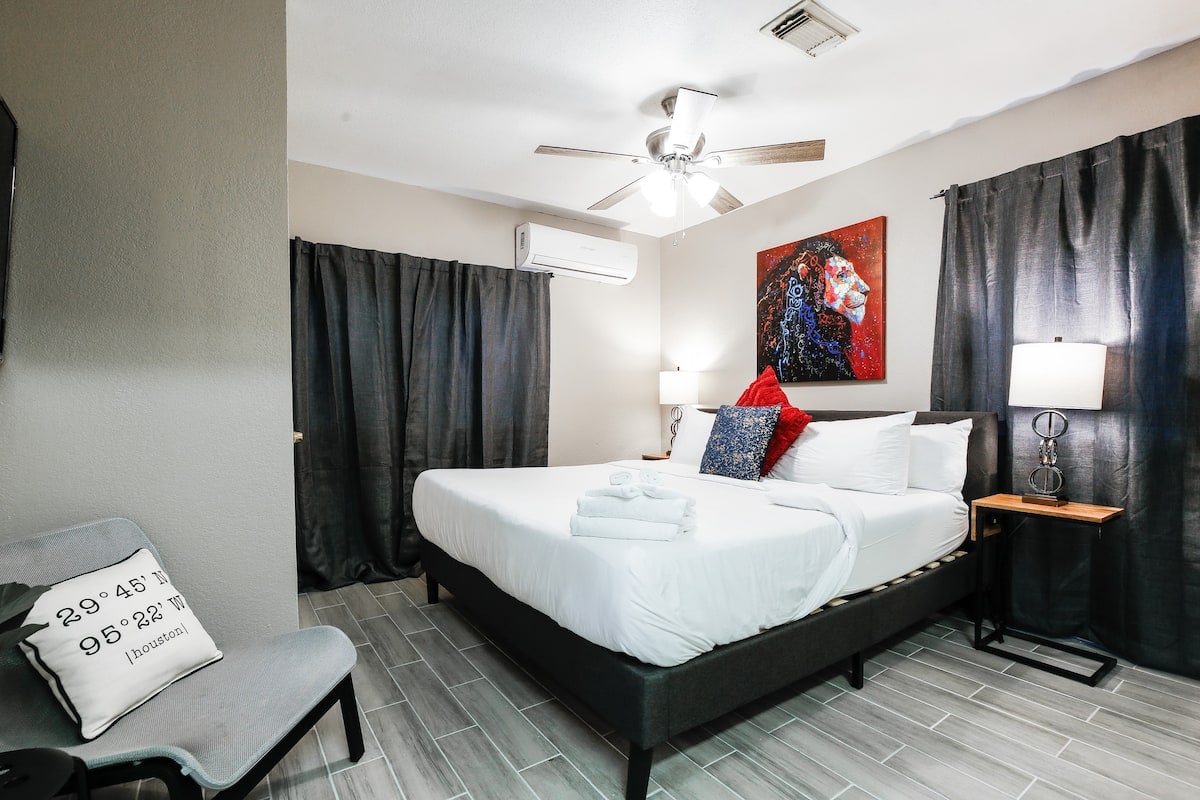 Welcome to your perfect Houston getaway! Perfectly located across from NRG Stadium and steps from the Texas Medical Center, this bright, modern studio offers comfort and convenience whether you're here for medical appointments, exploring, or just relaxing. Location Med Center/NRG 0.8 mi to NRG stadium 1.2 mi to MD Anderson 2.2 mi to Zoo 1.7 mi to Rice University 3.1 mi to Museum District Steps away from grocery store & Starbucks. Safety odds paramount, this is a secure gated community.