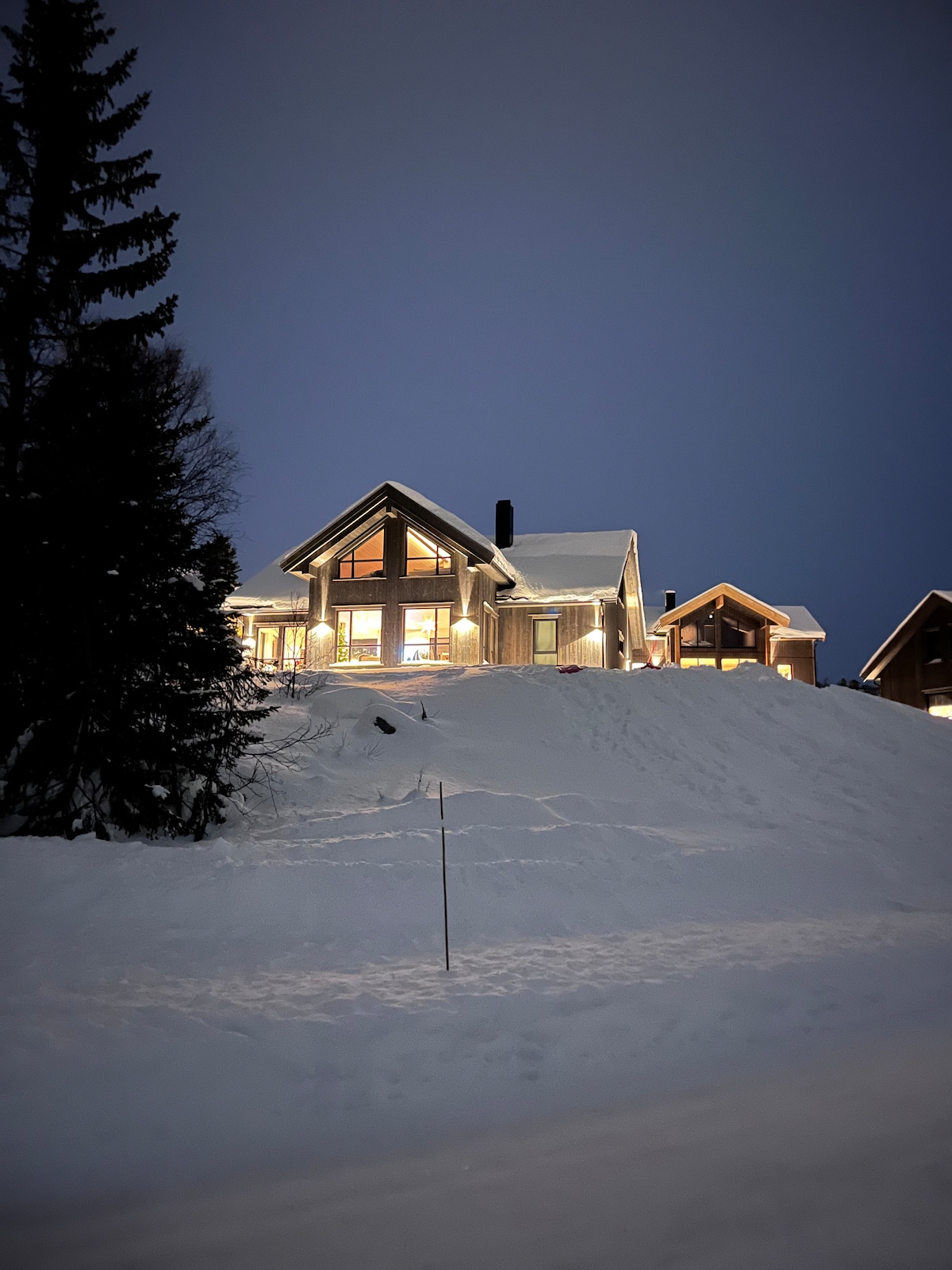 Dejlig hytte i naturskønne omgivelser. Hytten har uberørte udendørsområder, fantastisk udsigt og parkering lige uden for døren. Elbiloplader i garagen. Hytten har 4 soveværelser og 2 badeværelser samt ekstra bruser i vaskerummet. Forberedte skiløjper under hytten. Et stort alpint feriested og vandland ligger omkring 15 minutters kørsel væk. El og træ er inkluderet i prisen. Du er meget velkommen!