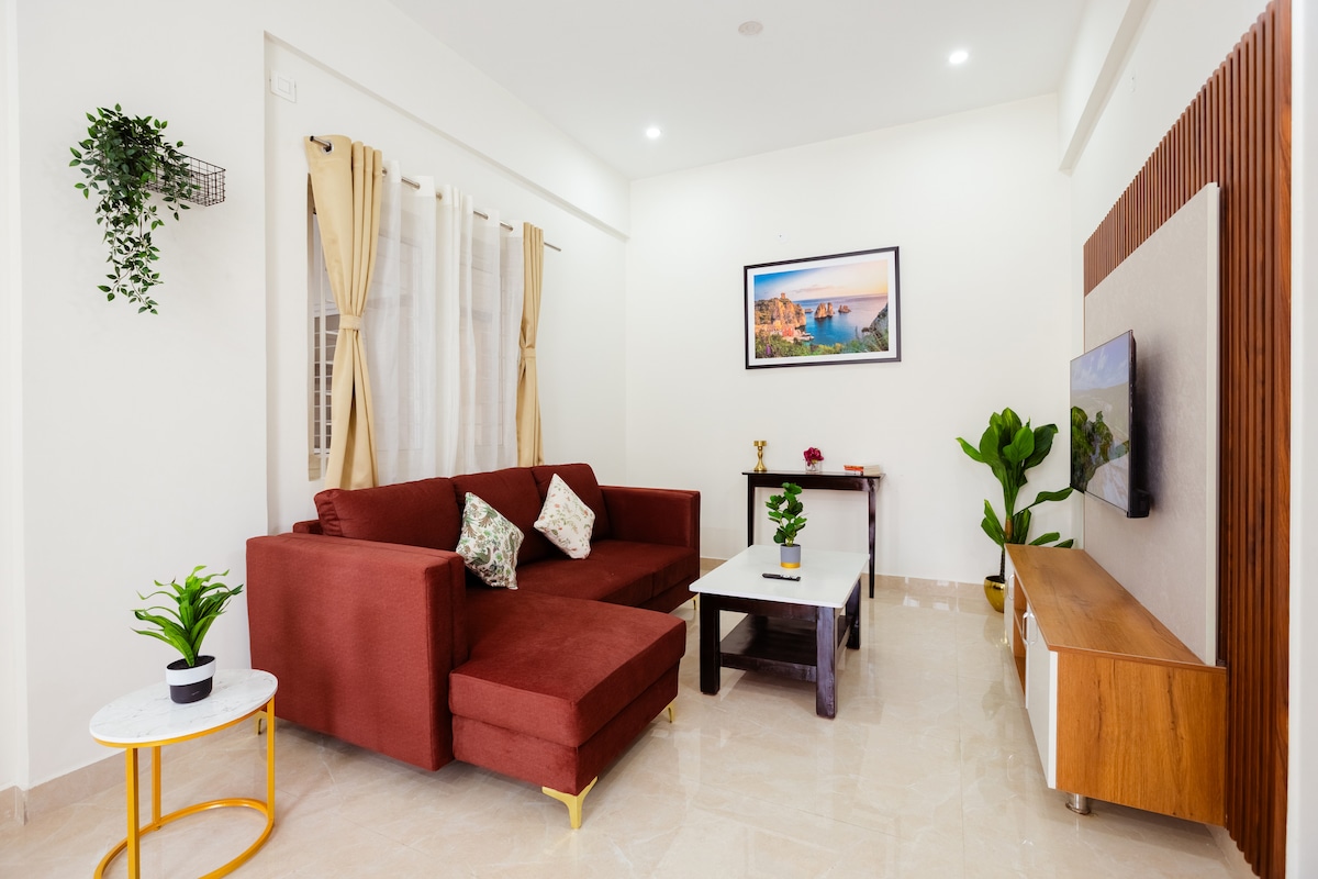 Bemærk: På grund af lokale regler er det i øjeblikket kun muligt at være vært for indiske gæster Boligen ligger i en rolig vej mellem 27th og 24th Main og er kun få skridt fra restauranter, supermarkeder, hospitaler og frodige parker Med queensize-seng, sprødt hvidt sengetøj og håndklæder, skrivebord/spisebord, spejl, garderobe, 50" Smart TV, Wi-Fi, køleskab, induktionskomfur, ovn, kedel, køkkengrej, grundlæggende madlavningsingredienser, middagssæt, RO-vand, vaskemaskine, tørreområde, gejser, toiletartikler, hårtørrer, strygebord og inverter