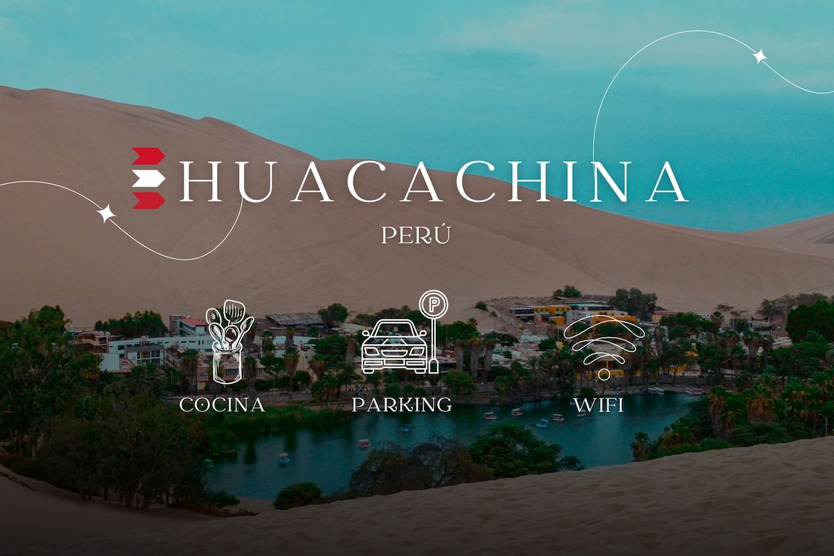 Denne elegante og varme bolig er ideel til gruppeture, familie eller solo; med udsigt over de imponerende klitter, der omgiver Huacachina Lagoon, den ligger i et roligt område og har de ideelle faciliteter til din hvile.🌼☘️