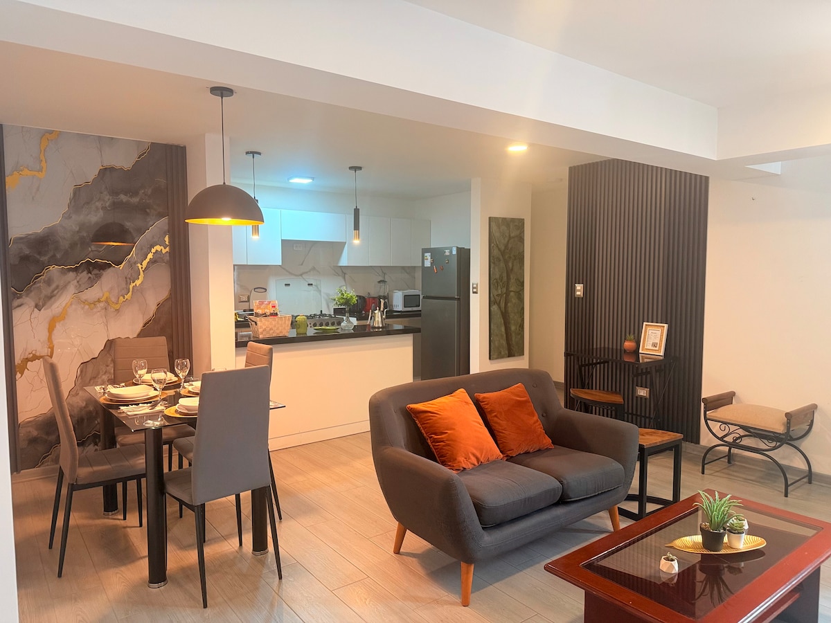 🏡Nyd et hyggeligt ophold i hjertet af Urb. Californien, et af Trujillos roligste og sikreste områder. Lejligheden tilbyder 1 soveværelse, komplet badeværelse, komfortabel stue, udstyret køkken og vaskemaskine, ideel til korte eller lange ture. Perfekt 🌎 beliggenhed i nærheden af supermarkeder, restauranter, parker og hovedgader. Uanset om det er turisme eller arbejde, finder du her komfort, sikkerhed og den bedste hvile