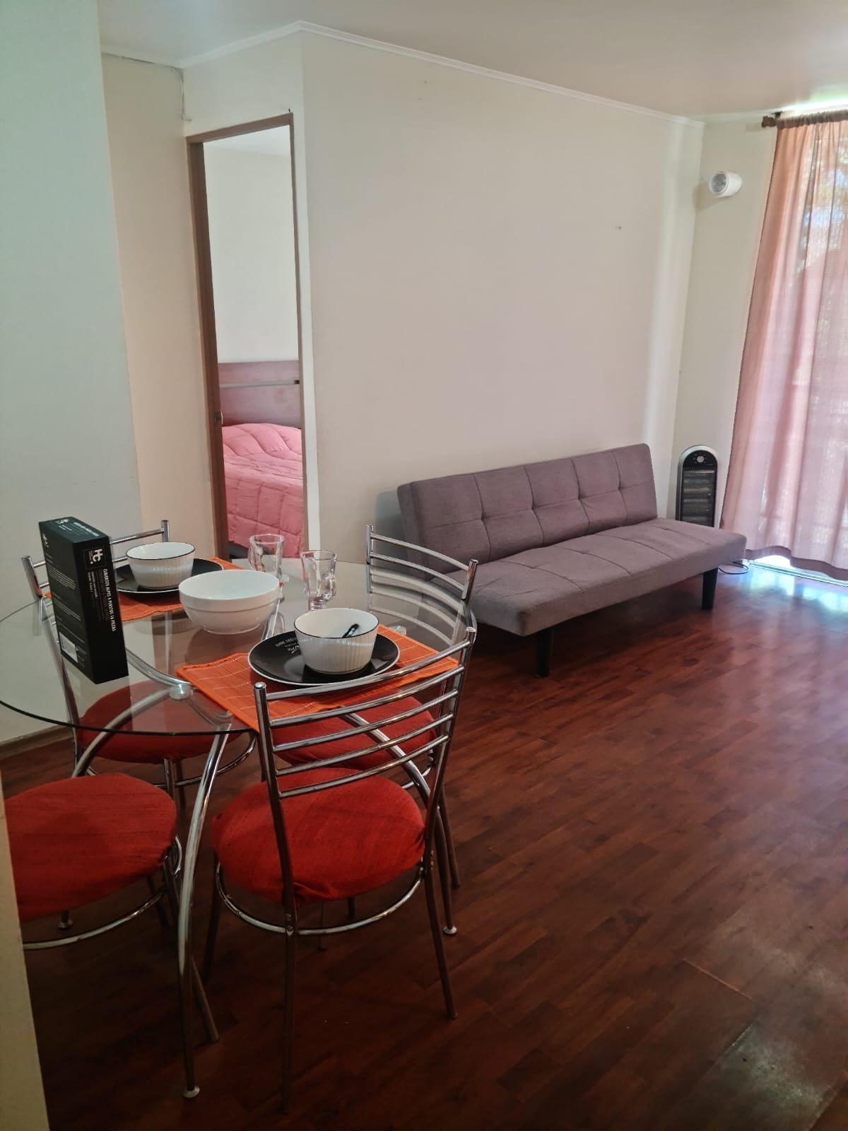 Komfortabel lejlighed beliggende 10 minutters gang fra centrum. Beliggende i et roligt boligområde, tæt på minimarkeder, pub, restauranter og med nem adgang til Ruta 5 Norte. Den har døgnportner, privat indendørs parkering, legeområde til børn, træningsmaskiner og cykelparkering. Få skridt fra byens hovedpark, Parque Ribereño, hvor du kan dyrke udendørs sport og nemt komme til offentlig transport