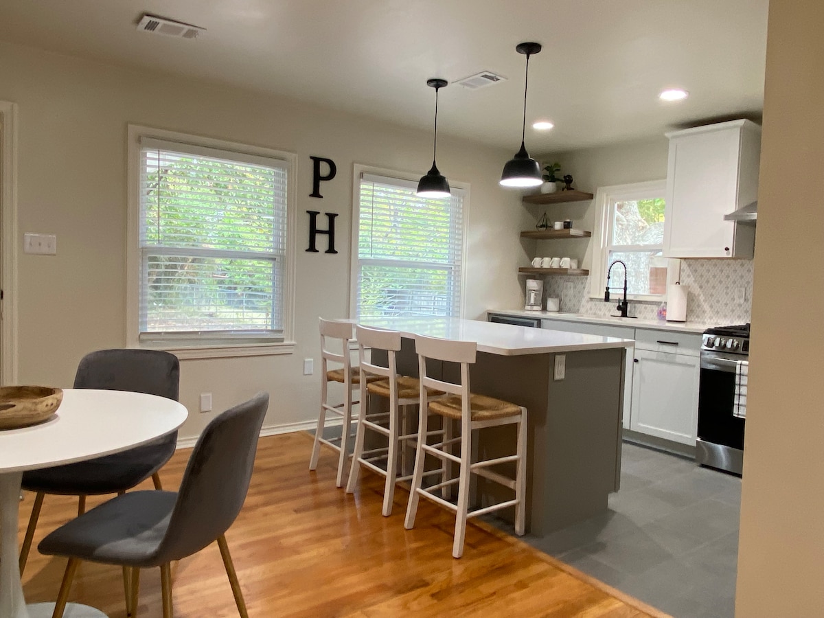 This restored 1905 Victorian duplex cottage is two blocks from Little Rock Central High School in the heart of the historic district. It was completely renovated as a certified historic rehabilitation in 2007, and is meticulously maintained. The apartment has 12 foot high ceilings, beautiful trim and details, original cypress flooring, quality, comfortable, practical furnishings, a well appointed and stocked kitchen ready for cooking, off street parking and exceptional charm.