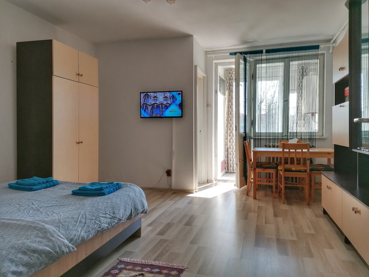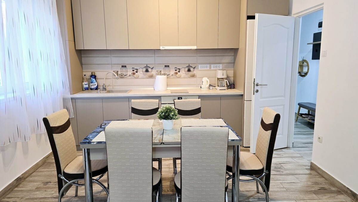 Rummelig lejlighed med 2 soveværelser + stue . Soveværelse 1 : kingsize-dobbeltseng; Soveværelse 2 : 2 1 person senge + 2 personers sovesofa; Stue : 2 personer forlænges hjørne, nok til indkvartering op til 8 personer i alt. Lejligheden er beliggende i et centralt og roligt område, væk fra trafikken, nyrenoveret + møbleret + moderne udstyret med absolut alt, hvad der er nødvendigt for at føle sig hjemme. Lejligheden har en privat parkeringsplads lige foran vinduet .