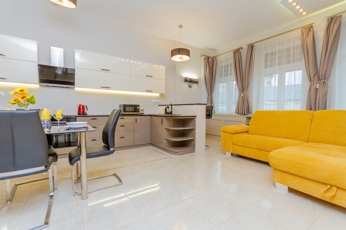 GUEST FAVOURITE AWARDED, 2BEDROOMS APARTMENT HOSTED BY SUPERHOST! Romance, Spa, and Luxury A pearl in the center! Private jacuzzi, infrared sauna, massage chair, 2 bedrooms, 2.5 baths in a uniquely apartment! We tried to recall the atmosphere of the spa town of Budapest in the 1920s and 1940s. The apartment, decorated in an Art Deco style, recalls the atmosphere of bourgeois luxury that aristocrats looking for relaxation, romance, and spa experience were looking for in Budapest in the 1920s.