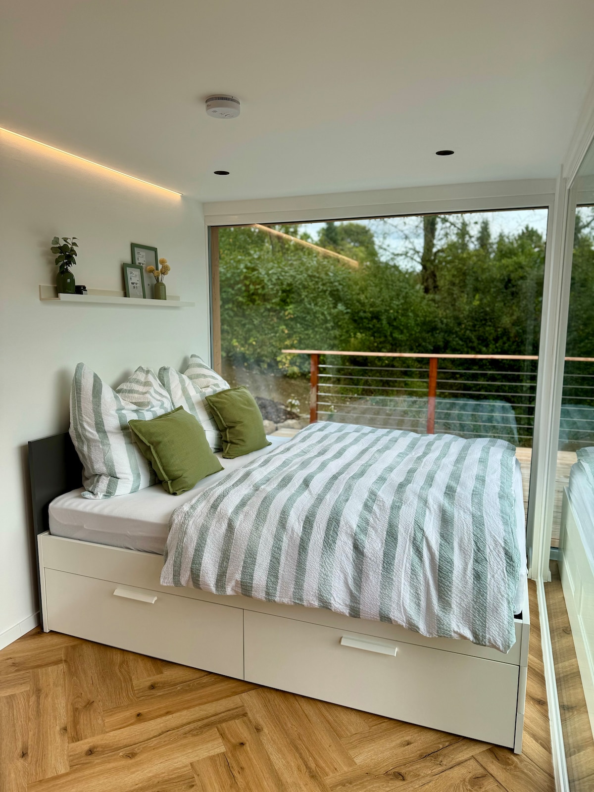 Lær livet i et minihus i romantisk natur at kende. Den bæredygtige bygning var fuldt designet og bygget internt. Høje standarder for design og materialer samt en slags betagende udsigt fra det panoramiske opholdsområde lader ikke noget tilbage at ønske. Den glaserede stue med udsigt over naturen er bare et af højdepunkterne. Der er et privat boblebad på terrassen. Køkkenet er fuldt udstyret. Boblebadet kan bruges hele året rundt.