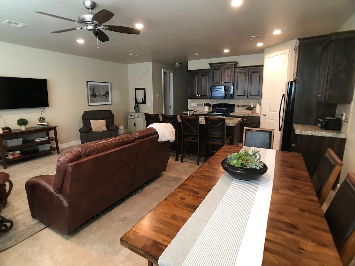 The Treetops is the perfect place to call home while you are away from home. Tucked in to a charming, quiet neighborhood, guests can make memories with friends and loved ones in this bright, unique property while being surrounded by 80 year old pecan trees. The Treetops features a full kitchen, bathroom, washer and dryer, WIFI, 65 inch smart tv, queen bed, sofa bed & baby playpen. This location is perfect for a restful vacation, or to kick your feet up after a day of adventures in Southern Utah.