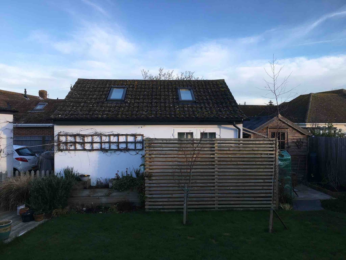 Hyggeligt studie i haven med egen indgang til 2 gæster. Vi tilbyder en kingsize-seng og separat brusebad. Udenfor er der et privat terrasseområde. Vi ligger et par minutters gang fra landsbyen, som har en række butikker, restauranter, caféer og pubber i sin hovedgade og ligger tæt på New Forest National Park. Vi er en kort gåtur (10 til 15 minutter) fra stranden og vandreture i det omkringliggende landskab. Ideel til gåture, cyklister, fuglekiggere og marineaktiviteter. Vi kan acceptere en lille, velopdragen hund efter aftale (send mig en sms for at diskutere det).