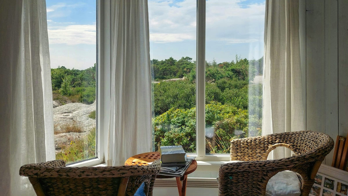 Hytta er smukt placeret på en samling med udsigt over Skjærhalden marina, skipperhus og havet. Behagelige lænestole og aftenmåltider med skinnende lanterner venter på dig i denne hytteidyll. Indenfor inviterer bløde sofapuder til pejs og brætspil. Eller sid ved spisebordet med en god kop og se på lyset fra havnen. Tomten er placeret stor og uforstyrret med synlige nabohytter. For børnene er grunden en sikker legende kage med sjove klatretræer og bjergkram, man kan hoppe rundt på.