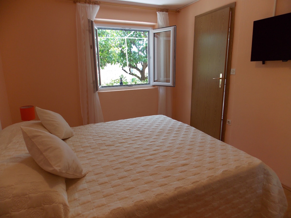 Vi tilbyder en privat lejlighed med gratis morgenmad. Ejendommen ligger i den afsondrede bugt, ideel til at nyde som kongelige! Scootere, bil, cykler, kajakker, privat lille fodboldbane er tilgængelige sammen med alt, hvad du kan have brug for til en perfekt ferie! Huset ligger kun 5 km fra byen Hvar, en gammel by med en rig historie, smuk natur og vildt natteliv. Besøg os, og tilbring din ferie i den uberørte natur uden byens folkemængder og støj.