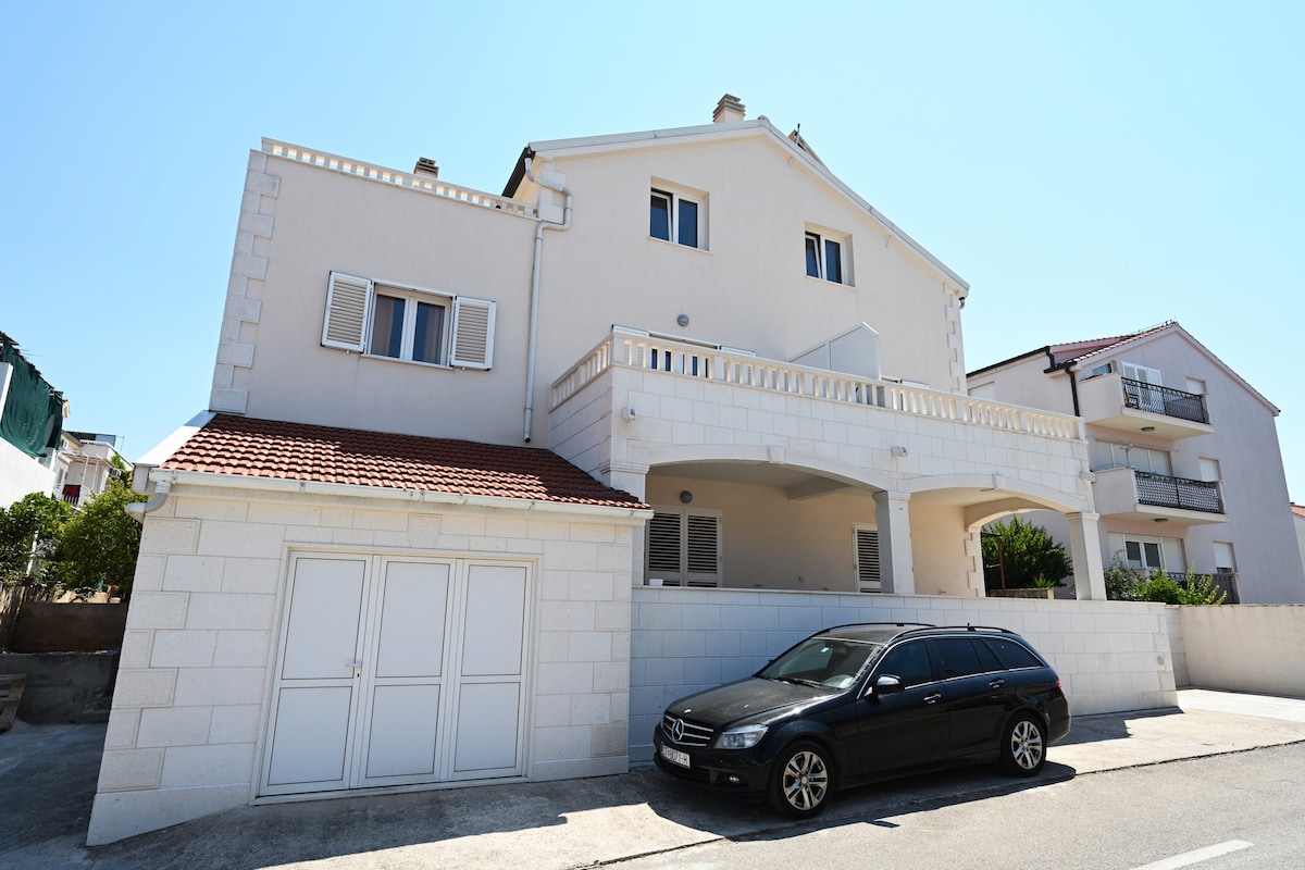 Apartman površine 60 m 2 sastoji se od spavaće sobe sa velikim bračnim krevetom, kupaone, prostrane dnevne sobe sa kuhinjom, predsoblja i balkona. Čitav južni zid prema moru je u staklu tako da prostor ima puno svjetla i sa balkonom čini jedan prostor. Apartman se nalazi na trećem katu kuće koja se nalazi u neposrednoj blizini centra grada (5 minuta ugodne šetnje uz more) te sa balkona ima otvoreni pogled na more i otoke budući se kuća nalazi u prvom redu uz more.