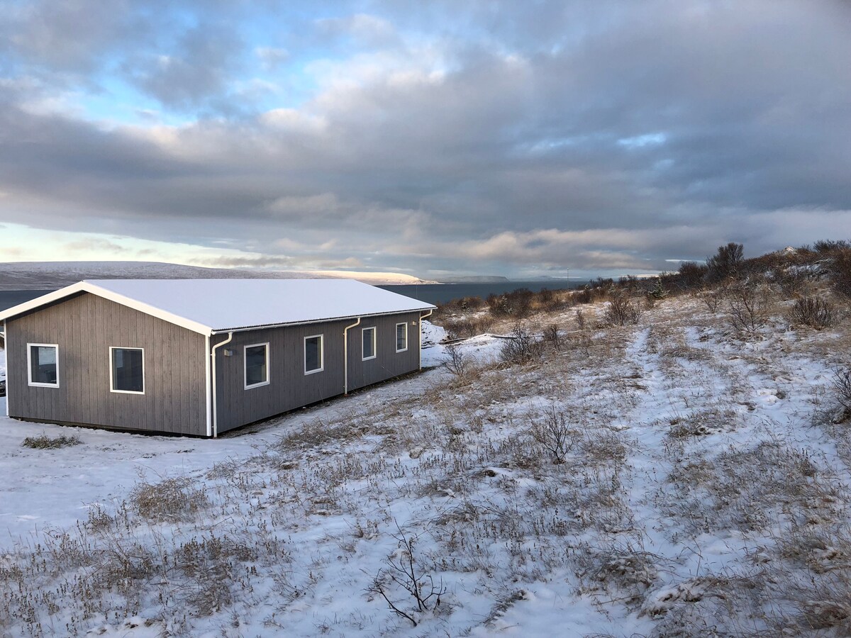 Eyri Seaside Houses is a cozy, warm and new guesthouse with a great ocean view on our small horse farm. We usually have horses at home, and if you like, you can contact us and we’ll let you pet them with us! We’re located in Hvammstangi but still very private, with only the ocean and landscape in view. There are a lot of birds at the beach, and there’s even a chance to spot seals. Occasionally whales enter the fjord, but you’ll need a lucky day to see them.