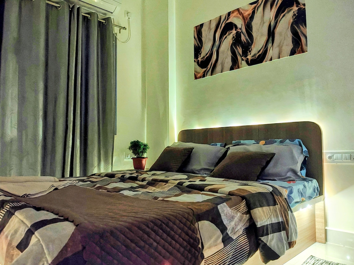 Faciliteter: Stue med aircondition og 65-tommers smart-tv Spiseplads 3 soveværelser med aircondition og tilhørende badeværelser Daglig husholdning TT-bord Vaskemaskine Udstyret køkken Mikrobølgeovn, kedel, riskoger, vandrenser Køleskab 3 gejsere Gratis parkering Træd ind i roen i vores charmerende 3BHK-lejlighed for en fredelig smuttur. Slap af i stuen, komplet med en gynge, der er perfekt til at slappe af efter en lang dag. Det ligger i et roligt nabolag og er ideelt for alle, der leder efter et fredfyldt fristed.