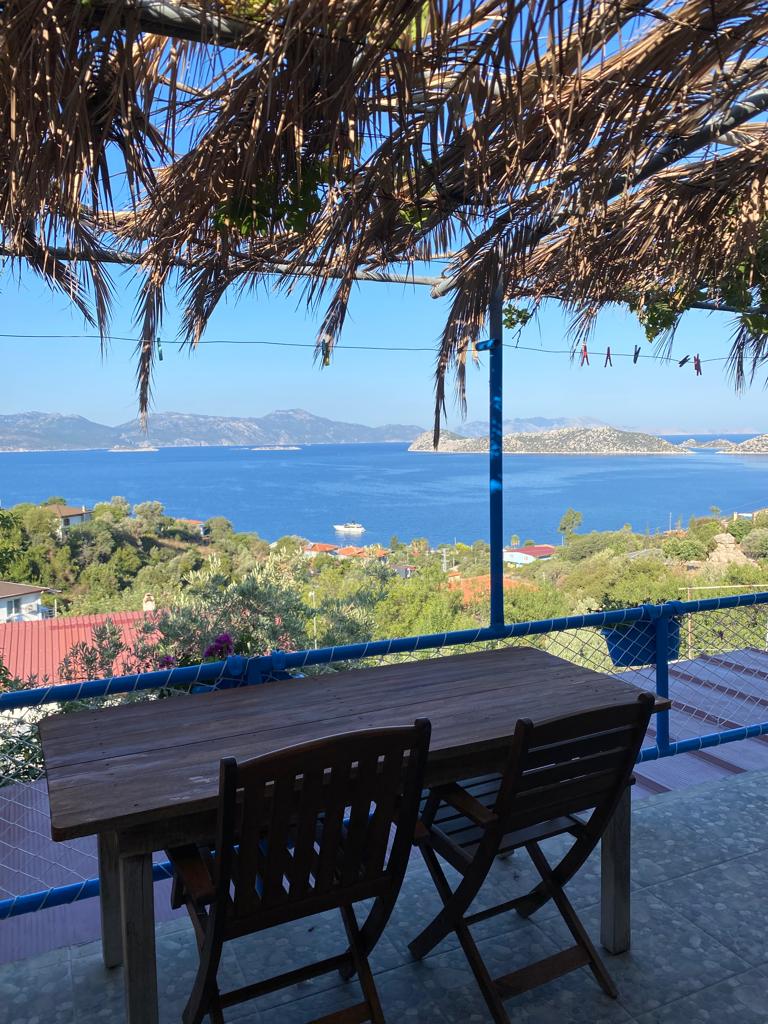 Fantastisk udsigt over havet og skoven. Fantastisk til en fredfyldt ferie. To lejligheder lejes sammen. De har forskellige indgange, ideel duplex. (2+2), det vil sige i alt fire værelser. Tænk på det som to separate 1+1-lejligheder. De to har en kapacitet på 5 senge. To familier kan bo der. Tæt på havet og centrale shoppingområder. Den udendørs swimmingpool er fælles. En elevator kan bruges til at komme ned til hovedvejen. Strandene ligger 400 meter fra vejen og 8 minutters gang væk. Den antikke by Amos og Kumlubük ligger meget tæt på