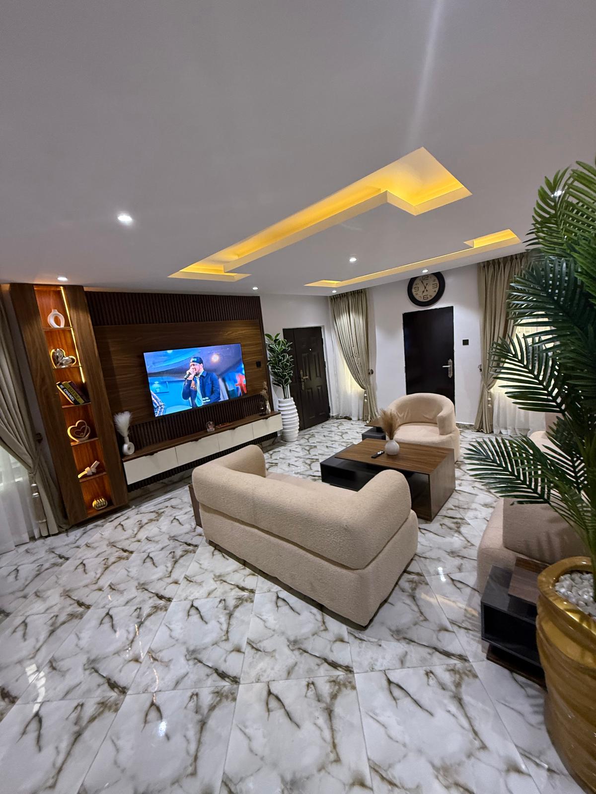 Sidemiwa Apartment - Luksuriøst ophold, privat sikret, 5 minutter fra MMA International Airport, ligger i Lagos. Slap af i dette fredelige og smagfuldt designede tilflugtssted. Boligen blander komfort med moderne stil og tilbyder hyggelige møbler, omgivende belysning og en beroligende atmosfære. Ideel til både arbejde og afslapning, det er et indbydende tilflugtssted, hvor du kan hvile, få ny energi og føle dig hjemme. Elektricitet, solenergi, trådløst internet med hurtig hastighed.
