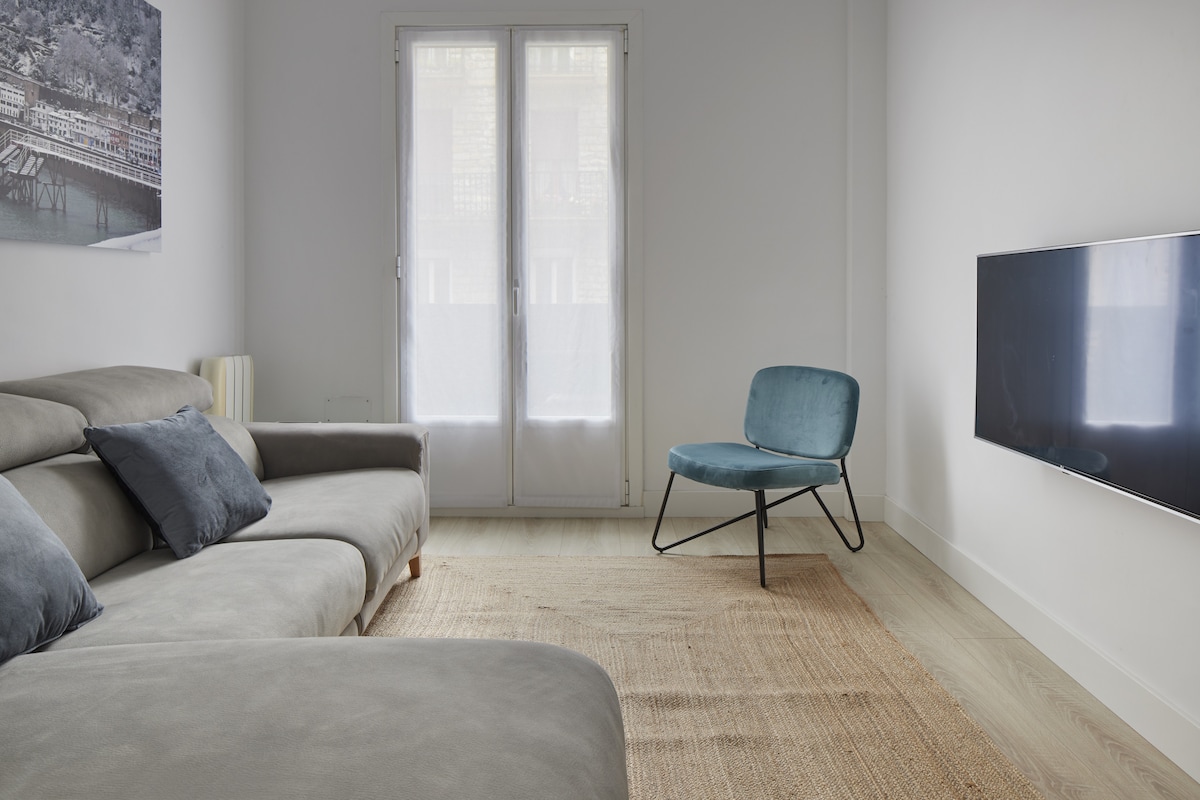 ES: Apartamento con dormitorio con dos camas, más otra cama supletoria para dos personas. Situado en pleno centro a dos minutos andando a la playa de La Concha y la playa de La Zurriola. Te alojarás en la zona de pinchos y tiendas de San Sebastián. EN: Newly renovated apartment, all outdoor with a bedroom with two beds. The sofa is a comfortable bed for another two people. City centre: a few minutes walking to Concha & Zurriola beaches, transports restaurants and shopping area are nearly, also.