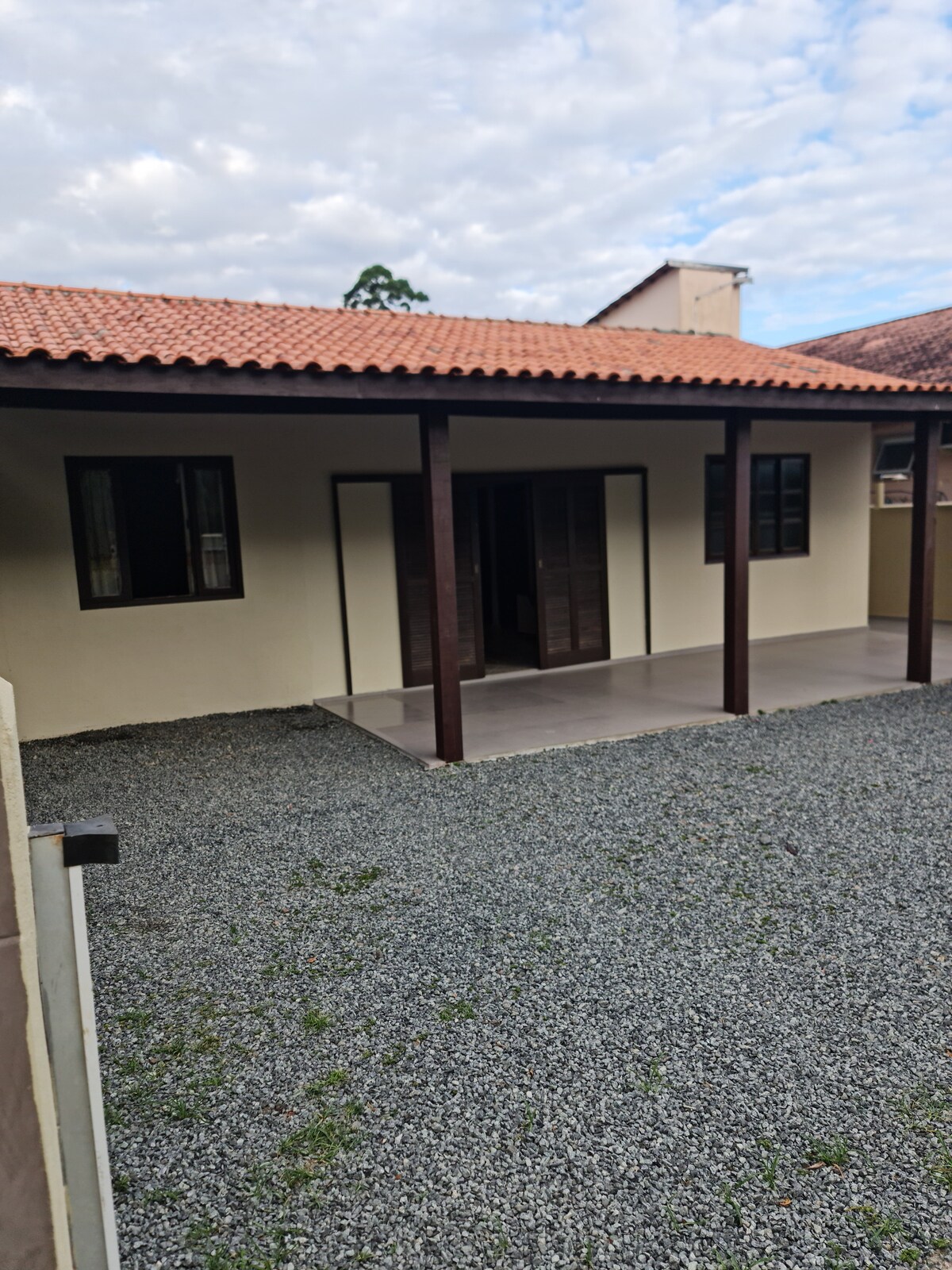 Super behageligt hus, godt oplyst og godt ventileret. Loftsstil med rustikt look og et privat værelse. Kompost, nogle grøntsager og en meget stor gårdhave. Tæt på den fredfyldte Acaraí Park og 800 meter fra Praia Grande og dens bølger. Det er 10 minutters gang. Terrasse med grill og stor åben garage. Tæt på Prainha, lokale barer og restauranter. Tæt på Acaraí-floden og den nye strandpromenade.