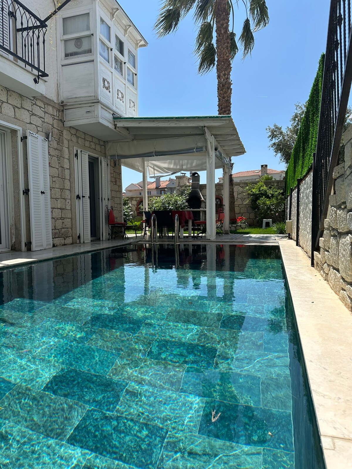 🏡 Villa Argia Alaçatı – Huzur, Konfor ve Özel Havuz Bir Arada Alaçatı’nın sakin bir noktasında yer alan Villa Argia, özel yüzme havuzu, bahçesi ve taş mimarisiyle size sadece bir konaklama değil, unutulmaz bir deneyim sunar. Özel havuzumuz yaklaşık 26-28°C olup dört mevsim keyif sunar; size ait bahçede konforlu ve huzurlu tatil keyfi. Plaja ve çarşıya sadece birkaç dakika mesafede, ama gürültüden uzakta. Sessizlik ve konfor arayanlar için birebir 3 odalı, tam donanımlı, ferah ve huzurlu