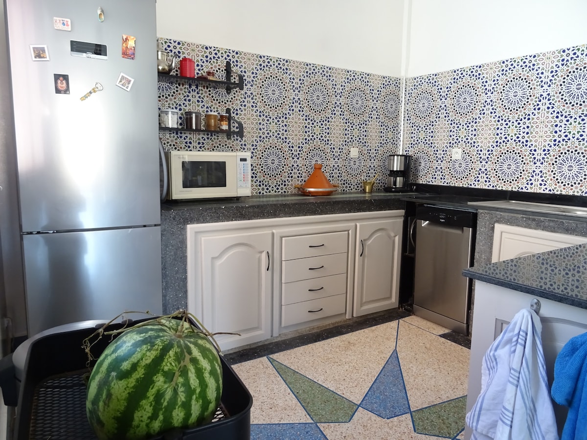 Slap af i vores lyse og hyggelige Surf & Sun-lejlighed, kun få minutter fra Imsouane-stranden og dens berømte surfsteder. Perfekt til surfere, par, der søger en solrig og fredelig ferie. Lejligheden har to komfortable soveværelser, et moderne badeværelse, hurtig fiber-Wi-Fi og et fuldt udstyret køkken med en kaffemaskine. Gæsterne kan også nyde en fælles tagterrasse med panoramaudsigt over havet og uforglemmelige solnedgange. Bemærk: Vi accepterer ikke ugifte marokkanske par i henhold til marokkansk lovgivning.
