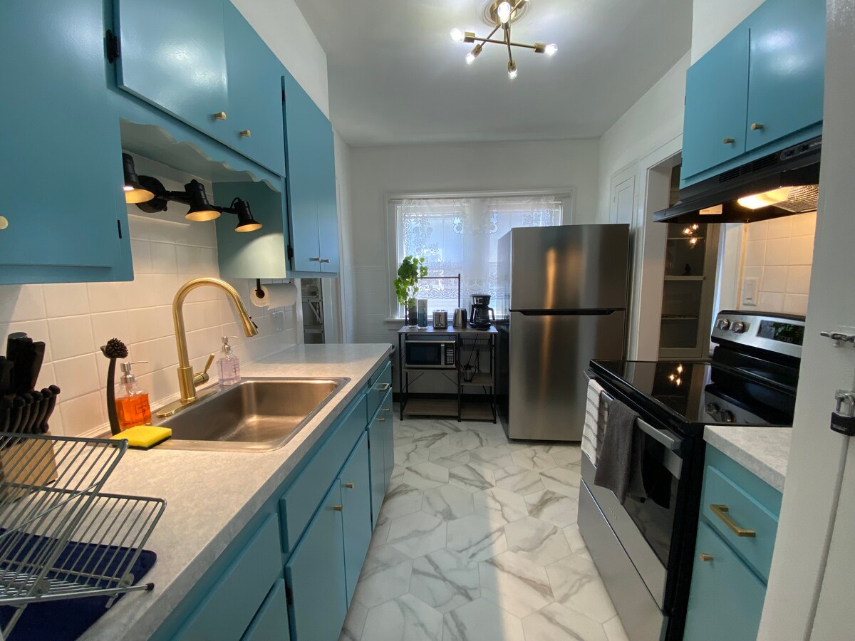 Nyd sommeren i denne charmerende 2-værelses lejlighed ovenpå i det historiske Old Brooklyn! Den er ideel til familier eller arbejdsrejser, og du finder komfortable senge, et komplet køkken til rigtige måltider, Roku TV og en luftig veranda, der er perfekt til morgenkaffe. Kun få minutter til downtown Cleveland, stadioner, museer, de bedste hospitaler og zoologisk have. Uanset om du er i byen for at arbejde eller for at skabe minder, er dette fredelige fristed perfekt til korte eller længere ophold.
