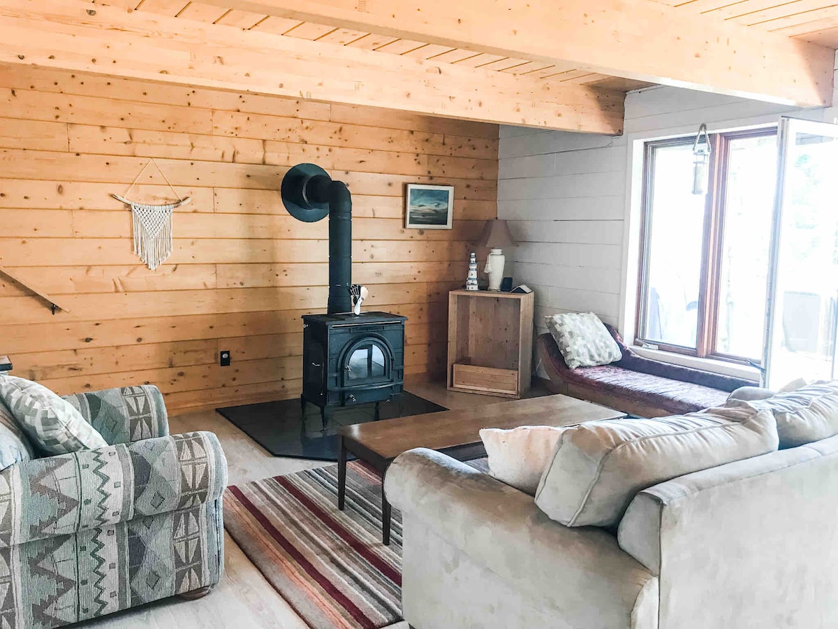 Sæt farten ned, og opdag et fortryllet sted fuld af varme, charme og karakteristiske faciliteter. Chic hytte, der er omgivet på tre sider af skoven, med en spektakulær udsigt over Cape Breton Highlands. Lige ved den berømte Cabot Trail, blokke fra havet, men stadig i byen, kan du nyde ro og bekvemmelighed. Træfyret spabad og pizzaovn. (Træ medfølger) Fem minutters gang til den dejlige L'abri restaurant og bar, lidt længere væk til The Doryman-musikstedet.
