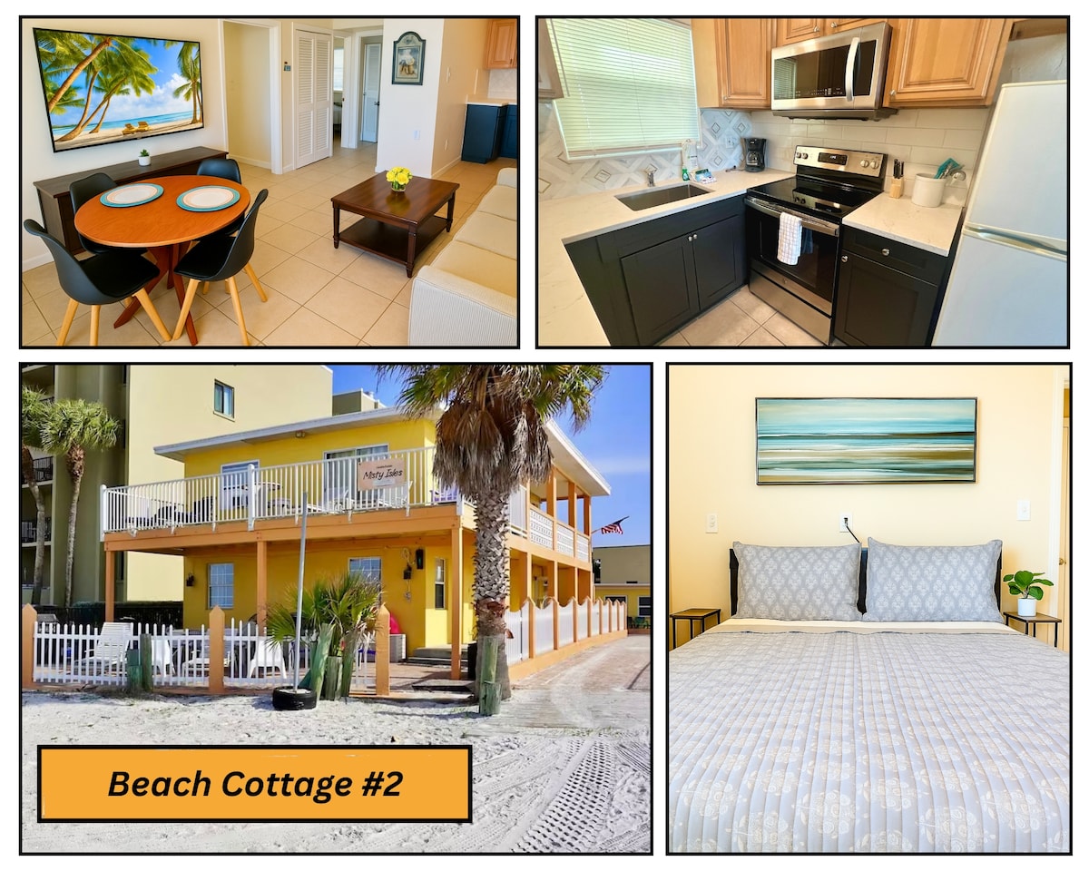 BELIGGENHED, beliggenhed! Nærmeste strandhytte til vandet på Indian Rocks Beach, udsigt til vandet fra din veranda og nem adgang til græs for kæledyr. Perfekt ferie for par. Nyd nogle af Floridas bedste strande. Minimalistisk levevis. *Køkkenet er for nylig blevet opdateret* Fælles pavillon og picnicbord ved siden af. Fælles vaskemaskine og tørretumbler tager kvarterer. Gangafstand til lokale restauranter og barer. Få minutter fra Clearwater Beach, turistattraktioner og minigolf. Ejendommen ligger ved siden af 2 offentlige adgangssteder.
