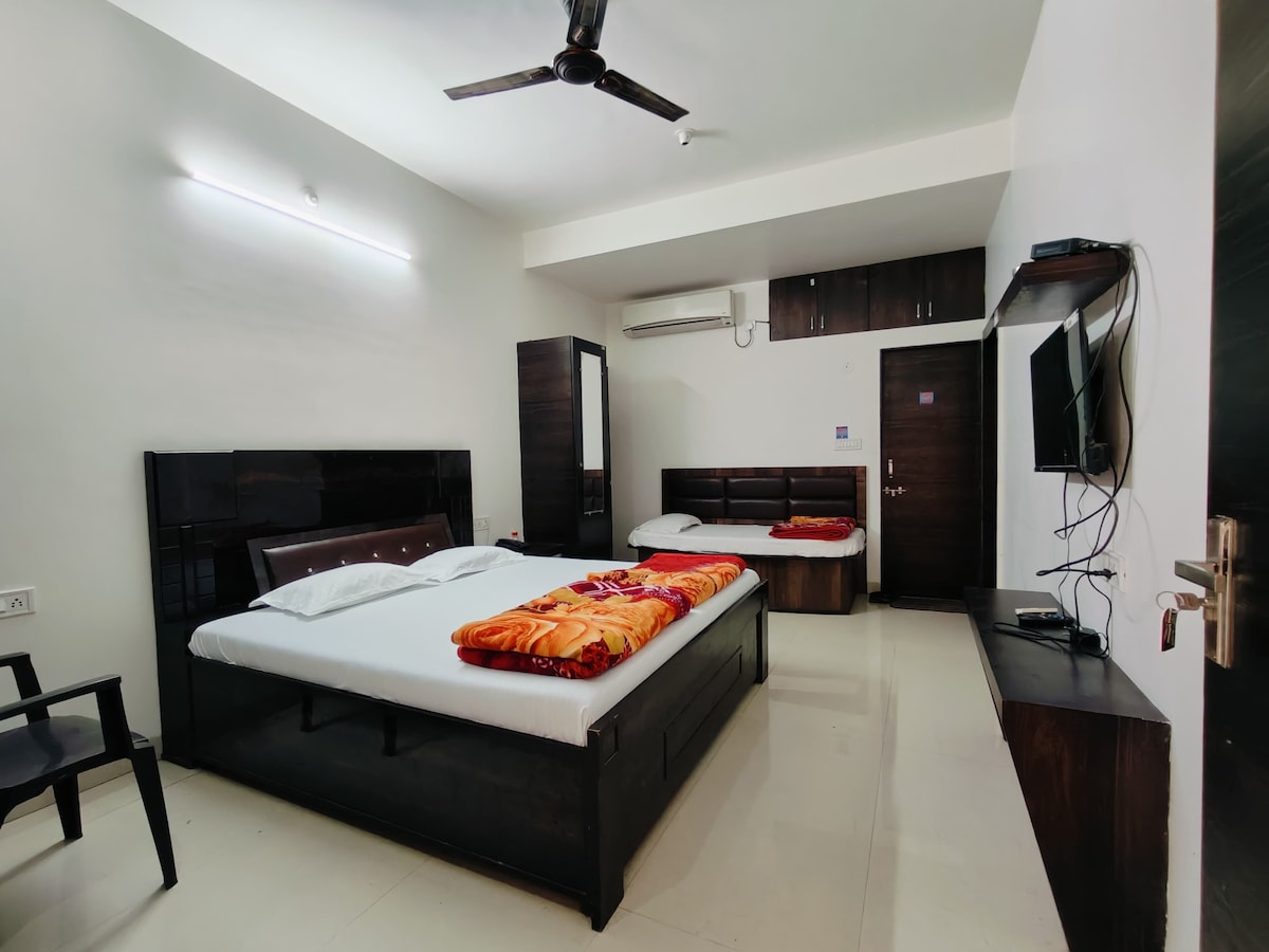 This stylish place is close to must-see destinations. Our Executive Room offers a comfortable and relaxing stay with all essential amenities. Enjoy a well-furnished space equipped with air-conditioning, a flat-screen TV, and a clean attached washroom. The room includes a cozy bed, wardrobe, and basic facilities to ensure a pleasant and hassle-free experience for every guest.