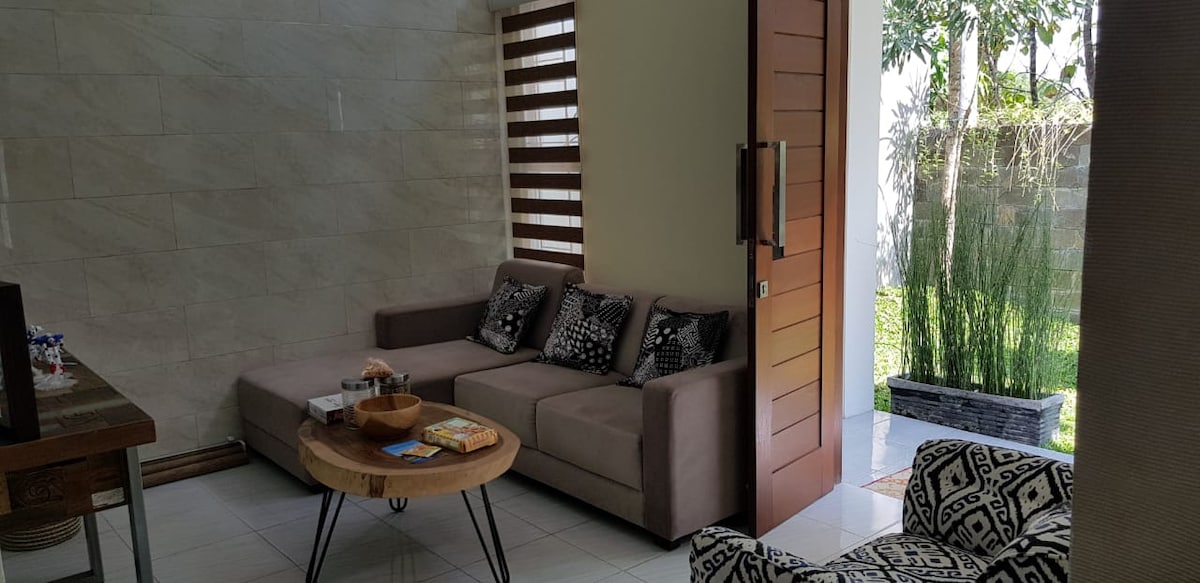 Privat villa beliggende i Bantul. Beliggenhed tæt på marked med traditionel. Fra villaen kan du nemt bestille mad via onlineapplikationen. Alternative stier til attraktioner i Mount kidul, Bantul og til NYIA Lufthavn. 5 gæster 2 soveværelser - soveværelse med kingsize-seng og badekar - Wi-fi -NETNET - Parkering til 3 biler Haven er stor og har en garage. Moderne faciliteter såsom swimmingpool, spisekammer, familierum med 60 tommer Smart-tv, indendørs og udendørs spisestue