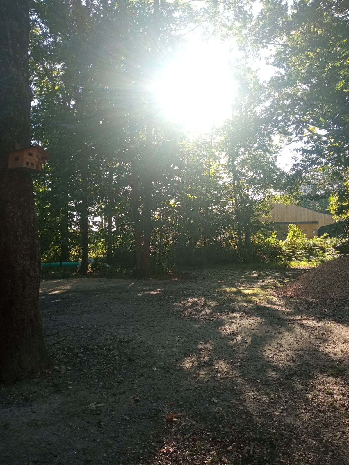 Velkommen til vores tre hektar store grund midt i skoven, hvor du kan slå dit telt op. Du har adgang til elektricitet, og der er en koldtvandshane ved siden af vores garage. Vi bor på den tilstødende grund, hvis du har nogen bekymringer. Naturen venter på dig med en fantastisk vandretur på stien, og engene omkring gården er fyldt med heste. Og for dyreelskere er der et hønsehus på vores grund!