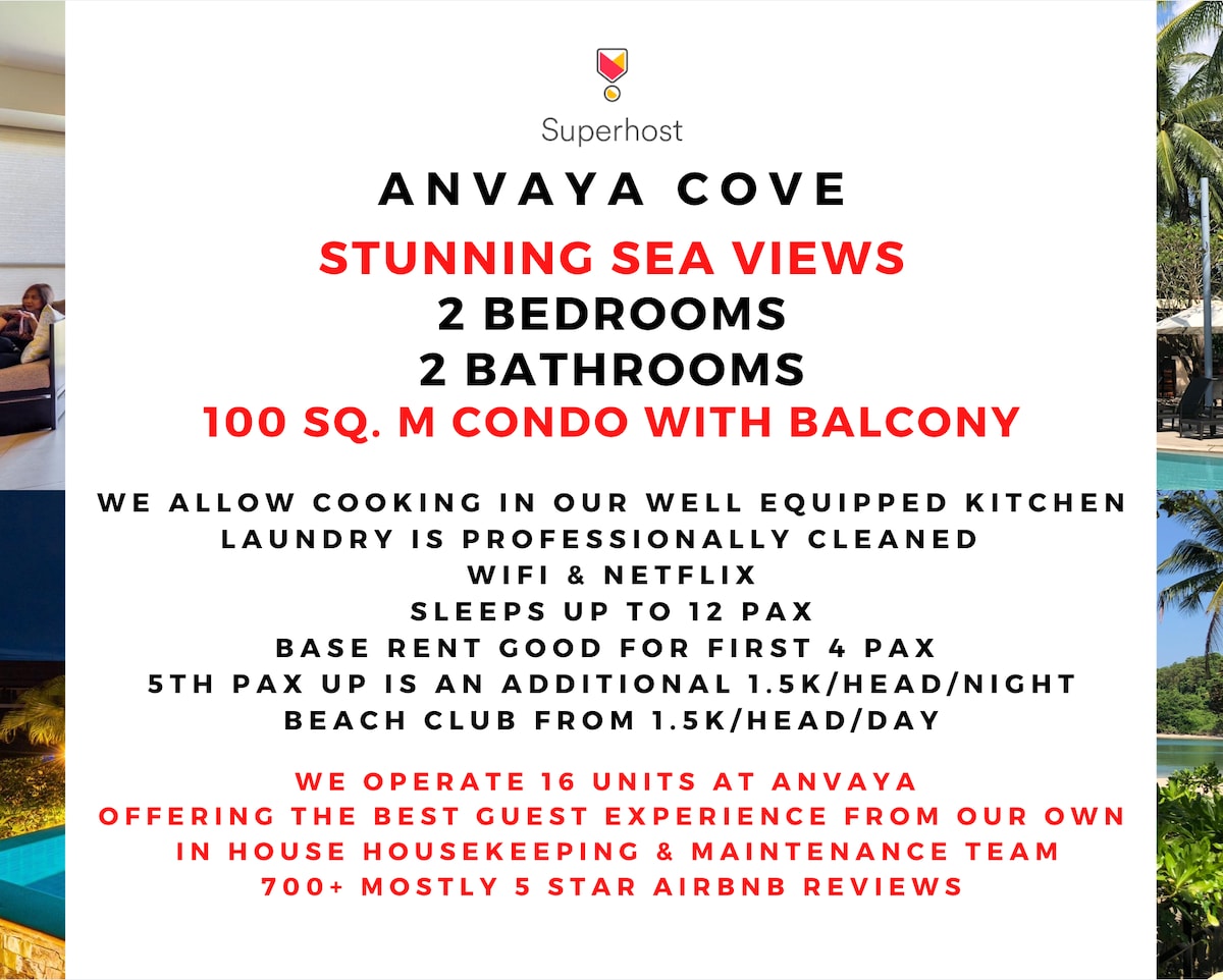 I’m a Superhost with 700+ reviews ✓ We live at Anvaya ensuring your stay is seamless ★ Super clean unit with professional laundry ★ Cooking Allowed ★ WiFi/Netflix ★ Base rate good for up to 4 pax ★ Additional pax @ 1.5k/head/night ★ Beach Club entry from 1.5k/head/day - only paid on days you actually enter the club ★ Beach Club now managed directly by Ayala Hospitality ★ New Head Chef who trained at Enderun ★ Makes a great base to also explore Zoobic Safari, Ocean Adventure & Las Casas Filipinas