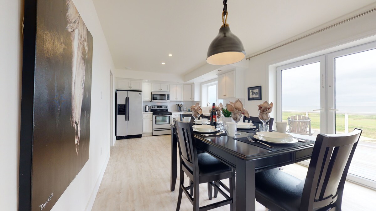 Nyt, smukt, moderne hjem med spektakulær udsigt i fredelige landlige omgivelser. Kun 10 minutter til Cabot Links og Cabot Cliffs golfbaner . Mange andre steder, man skal se i Cape Breton, der ligger i kort afstand! Denne bolig har 3 soveværelser, 2 badeværelser og åben stue/køkken. Køkkenet er fuldt udstyret og grill også til madlavning. Master suite ovenpå har en kingsize-dobbeltseng med badeværelse, herunder brusekabine og fritstående badekar. Ekstra pavillon/solrum lige bygget.