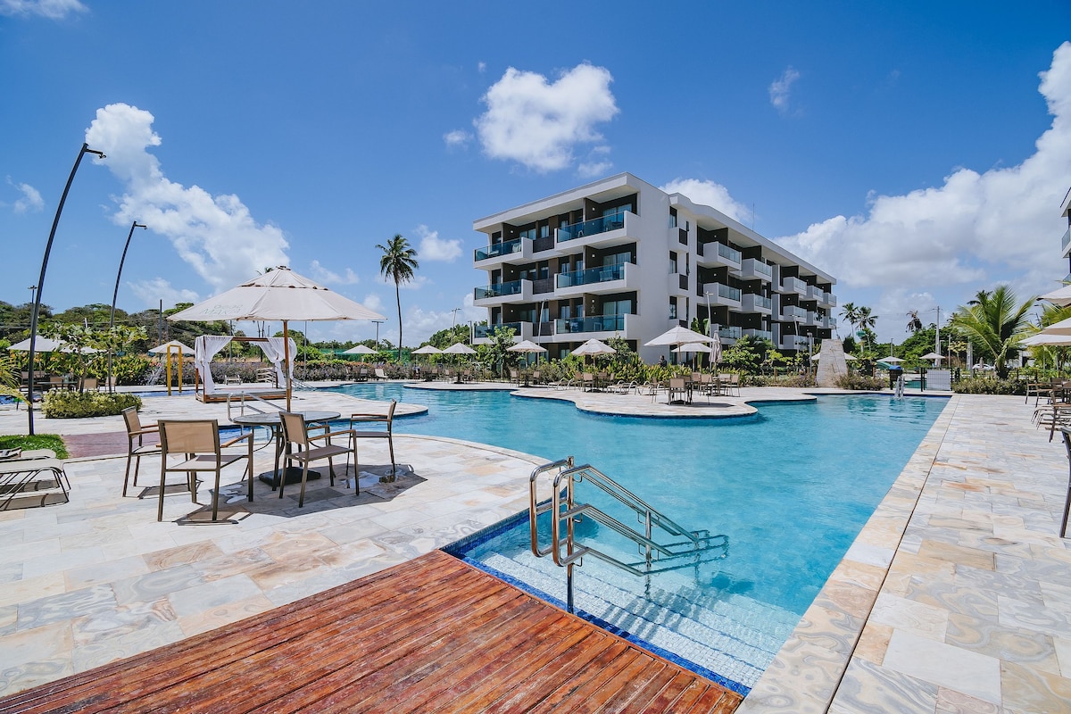 En smuk og hyggelig lejlighed i et naturparadis med to soveværelser (et en-suite), to badeværelser, stue, tekøkken og balkon. Fuldt udstyret og indrettet til gæster med raffineret smag. Det har en stor struktur, forskellige pools (børnepool, voksne, med raia) fitnessrum, sauna, briquedoteca, legeplads, spilrum, forskellige baner, fastfoodplads, privat adgang til en smuk strand (fod i sandet), kontemplationsplads og masser af natur