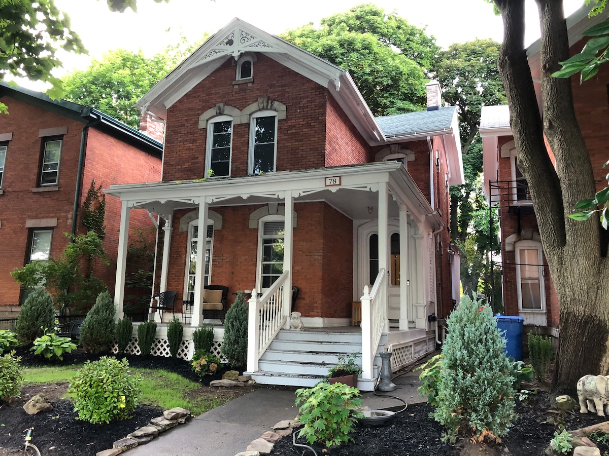 Ideel til arbejdsrejser, familiebesøg, universitetsophold eller deltagelse i lokale bryllupper og arrangementer. IG@roccitystays TIP: Føj os til din ønskeliste. Klik på ♥ i øverste højre hjørne for nemt at finde os • Lys, renoveret enhed – stille, sikker gade •Kunstens nabolag • Trin til Strathallan Hotel, Memorial Art Gallery • Gå til teater, museer, mad/drikke, natteliv, shopping • Tæt på lufthavn, 490, gymnasier • Historisk bolig med moderne bekvemmeligheder • AC: maj-okt • Oplader til elbiler efter anmodning