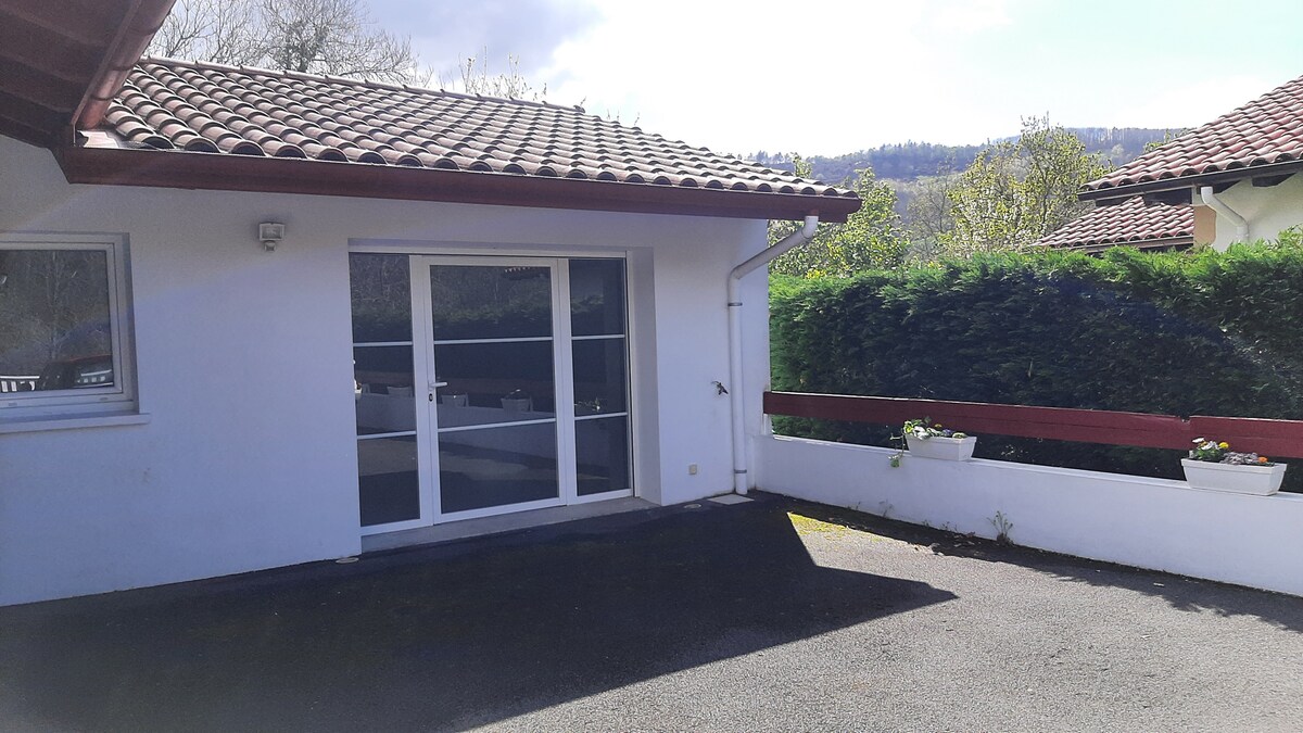 Charmerende indkvartering omgivet af have og grøn skov. Rummene er rummelige og hyggelige. Køkkenet er i amerikansk stil og veludstyret. Badeværelset er en fornøjelse med udsigt over skoven. Hvis du tager dit kæledyr med, bliver det glad. Vi har en smuk beagle. Vi er 2 km fra grænsen, 10 minutter fra stranden, 20 minutter fra San Sebastian og Biarritz. Vil du vandre i bjergene? GR-10-stien starter lige her. Du vil elske byen, den er smuk med sin fronton, sin kirke, sin restaurant.