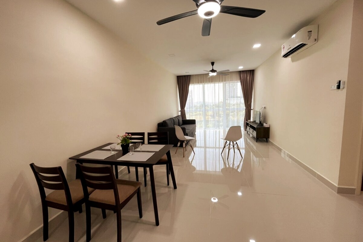 (1+1 BR & 1 badeværelse) Moderne og hyggelig lejlighed i hjertet af JB bymidte. Egnet til 4 personer familie, venner og forretningsgruppe. **5 minutter til CIQ, City Square, KSL, Pelangi og Larkin **8 minutter til Mid Valley Southkey, Larkin Sentral og Sentosa **15 minutters kørsel til Paradigm Mall, Sutera, Skudai og Mount Austin ✔ 4K SmartTV ✔ Højhastigheds Wi-Fi, arbejdsborde med forlængerledning ✔ Vaskemaskine ✔ Aircondition i alle værelserne. ✔ Atari-konsol, Mahjong og brætspil. ✔ GRATIS parkering til 1 bil