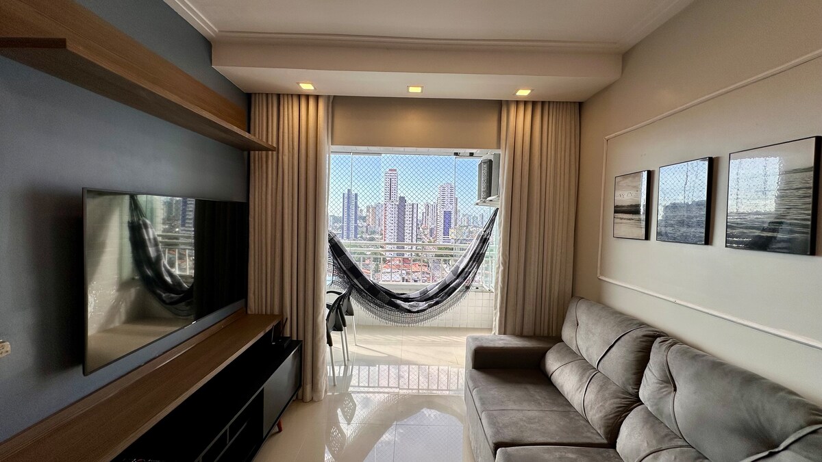 Desfrute de conforto e praticidade neste apartamento em andar alto, com ótima ventilação natural e ar-condicionado. A cozinha integrada à sala cria um espaço moderno e funcional, com acesso à sacada gourmet com churrasqueira. A suíte oferece cama queen e TV. O segundo quarto dispõe de cama treliche, acomodando até três pessoas com conforto e segurança. O condomínio conta academia, piscina, churrasqueira e brinquedoteca, garantindo diversão e comodidade para todas as idades.