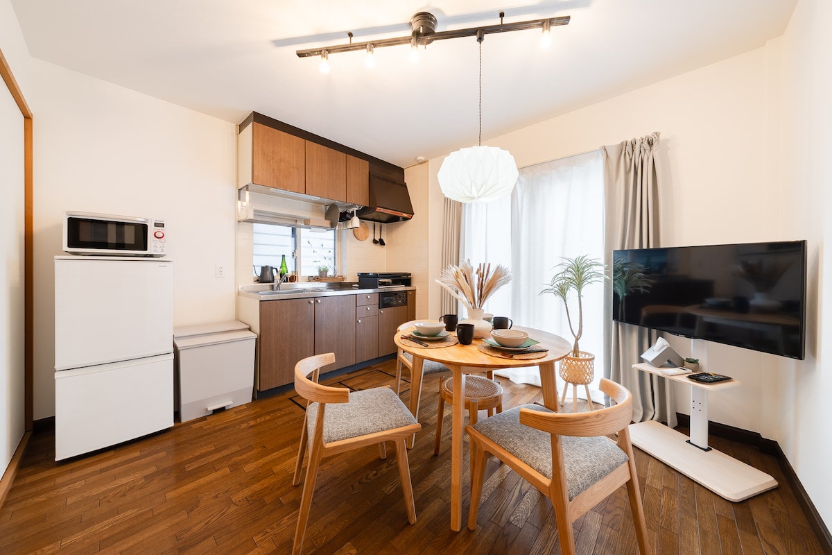 Just 5 minutes by train from Ikebukuro. The property is a 3-minute walk from Oyama Station, with a flat and easy-to-follow route. Located on the ground floor with no stairs, the room is ideal for guests with suitcases. This Japandi-style 1DK apartment offers a comfortable stay for families and groups. Conveniently located for shopping in Ikebukuro as well as exploring the retro local shopping streets nearby.
