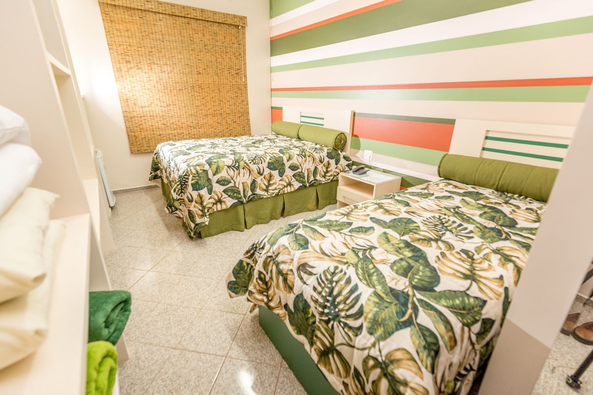 Der er tre meget hyggelige chaleter (Peace, Joy and Love) både i murerarbejde, meget stort og privat, med privat badeværelse, minibar, aircondition og en queensize-dobbeltseng, der er valgfrit tilføjelse af tre enkeltsenge*. *Vi accepterer to gæster per chalet. Hvis der er en tredje gæst, vil du blive opkrævet R$75 per person. Børn op til 10 år uden beregning.