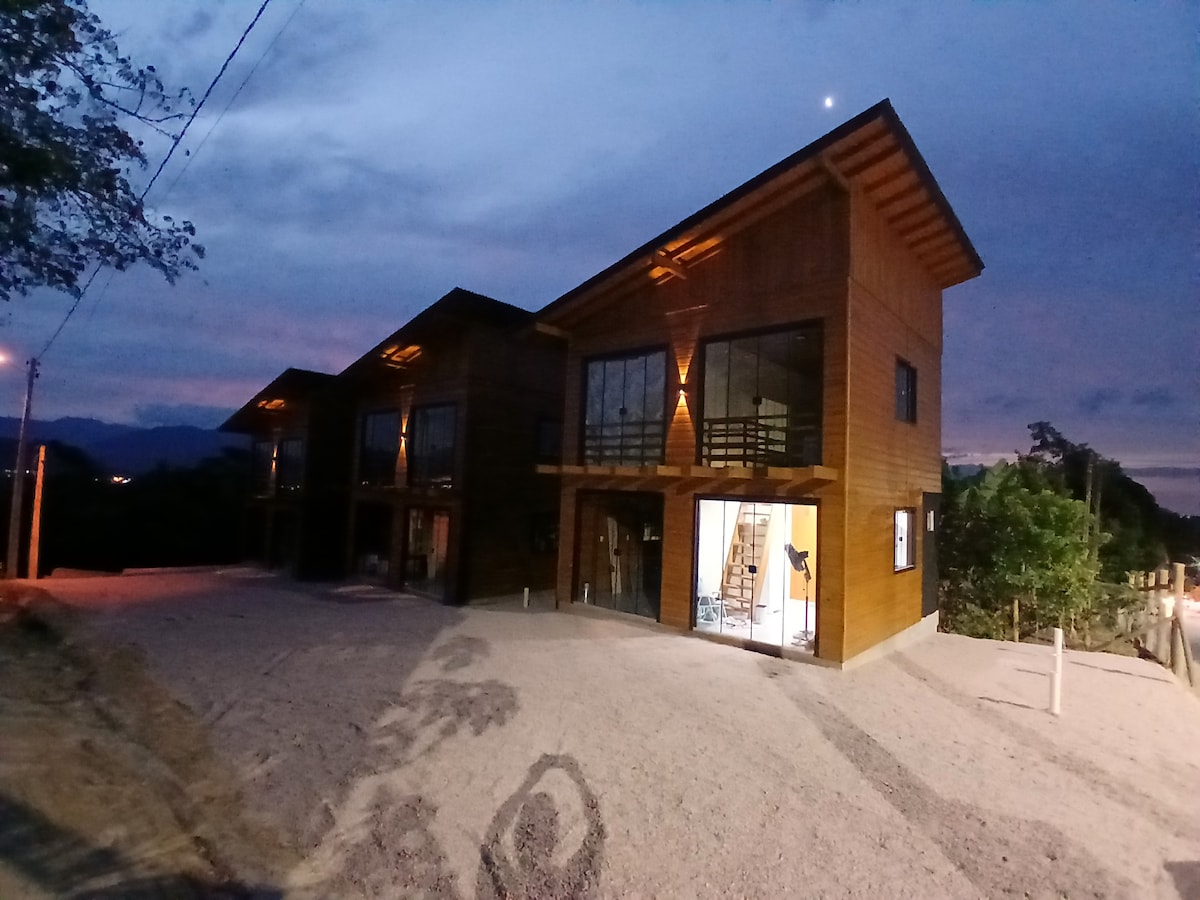 Refúgio perfeito no alto do morro em Camboriú, com vista deslumbrante da natureza. Chalé aconchegante, área de fogueira, churrasqueira e amplo espaço externo para relaxar. Sinta a tranquilidade, recarregue as energias e aproveite um pôr do sol espetacular. A poucos minutos do centro de Balneário Camboriú, é o equilíbrio ideal entre paz e praticidade.
