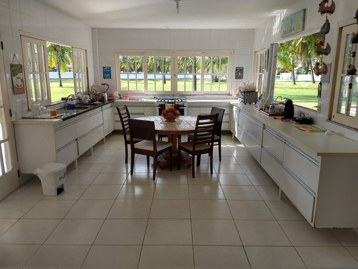 Stort strandhus med 5 suiter med aircondition, beliggende ved havet på privat græsplæne på mere end 6.000 m2, med swimmingpool (6m x 8m) og privat cykelsti/vandresti på 300 m (600 m tur-retur) på Ponta da Ilha (Cacha Pregos), Vera Cruz, Ilha de Itaparica, Bahia, stue med tre miljøer, hjemmekontor integreret i stuen, stort køkken, balkoner, 75 tommer Smart TV, to Wi-Fi internetnetværk (Oi & CallNet). Stranden er altid rolig, fantastisk til badning, især ved lavvande.