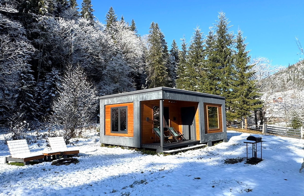 En moderne hytte til to, perfekt til en romantisk ferie eller et fjerntliggende job. I nærheden er der en flod, en skov og bjerge. Komfort og hygge indeni skaber en funktionel forfatters interiør i form af et studie, som giver dig mulighed for at få mest muligt ud af dit ophold i naturen. I hytten: - Queensize-dobbeltseng - badeværelse med bruser - køleskab, komfur, redskaber - brændeovn - rummelig terrasse med smuk udsigt - bøger og brætspil - wi-fi
