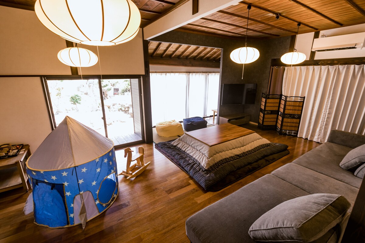 Umi no Mado er en lille bugt på den østlige del af Shimane-halvøen, omgivet af hav og bjerge, og er en privat hytte (feriehus 114 m²), der kun kan lejes af én gruppe ad gangen. Du kan nyde din egen tid uden at blive forstyrret af nogen. Der er mange forskellige måder at bruge det på, såsom en rejse, hvor alle vil have det sjovt, en rejse, hvor to personer vil slappe af, eller når man vil være alene og rolig alene. ◯Grill- og grillfest med familie og venner Du kan nyde en gryde og grill med familie og venner. Fuldt udstyret med grill, grillplade og meget mere. Du skal blot medbringe dine yndlingsingredienser og drikkevarer (*kul er mod betaling) Information om◯ faciliteter · Køkkenet er fuldt udstyret med service, redskaber og krydderier. Selvforsyning med madlavning · Gratis leje af cykler (3 personer) Foranstaltninger mod◯ coronavirus · Begrænset til én gruppe om dagen, så der er ingen kontakt med andre grupper · Der er kun natur i området (ca. 50 m til næste hus) · 35 berøringspunkter desinficeres efter hver udtjekning · Indtjekning og forklaring af faciliteterne kan også ske via tv ◯Besøgende Ikke-gæster har ikke adgang til ejendommen. Vi håber, at du kan acceptere dette. Det er lige så behageligt som at være hjemme.
