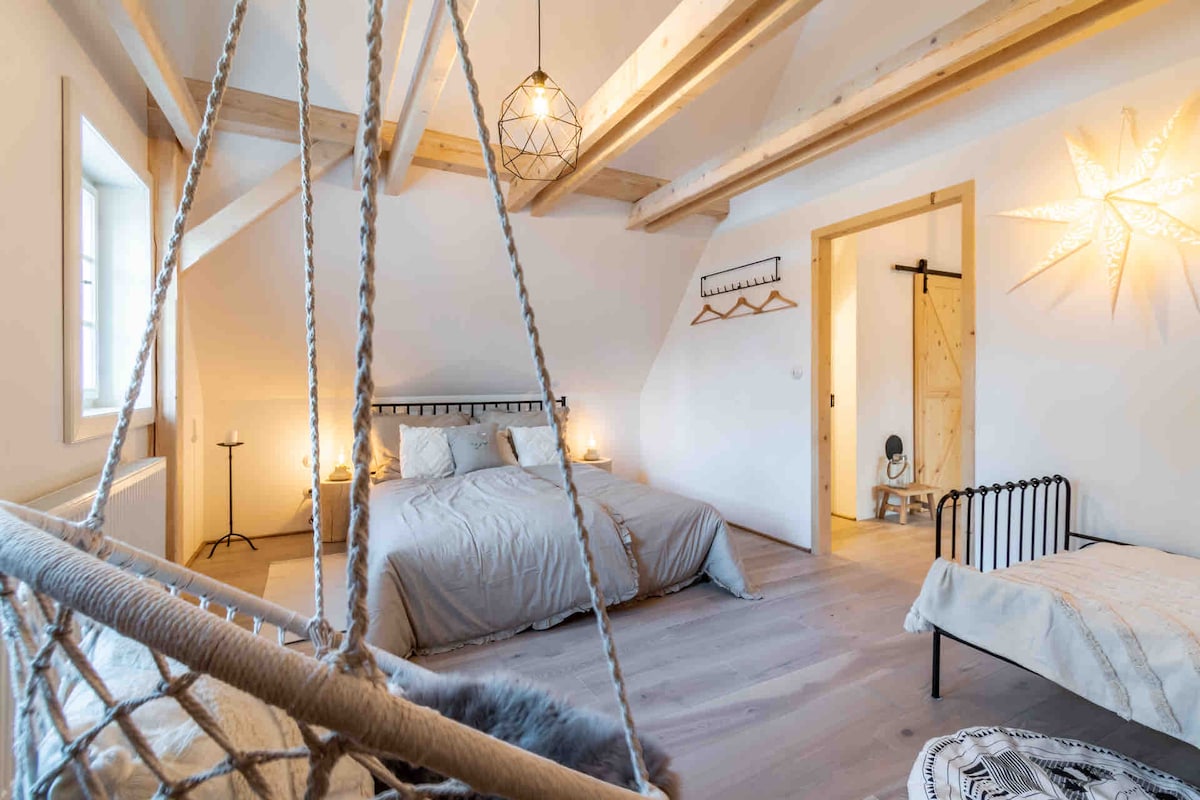 Hytta ligger i Jindrichov, i det charmerende område af Jizera-bjergene, omgivet af skove på hver side. Der er en naturlig swimmingpool på den anden side af gaden og en dejlig gåtur til Bramberk-udkigstårnet. Den første omtale af byggeriet er fra 1824, men det kan tage endnu længere tid. Vi boede her i en uforglemmelig barndom, ledte efter glasskatte, fouragerede blåbær, svampe, samle spyd og bygge reservoirer i bækken. Vi har nu renoveret hytten og vil gerne dele den smukke atmosfære på stedet med dig.