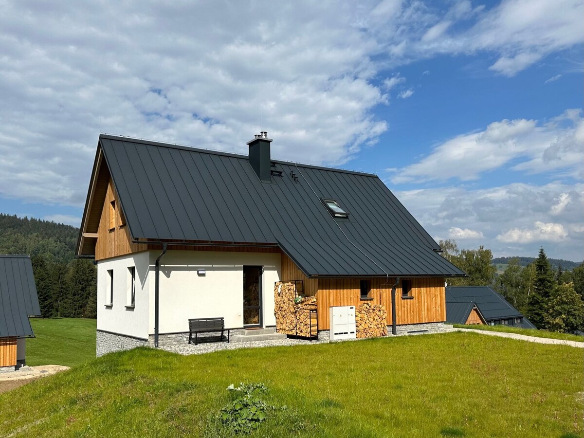 Den nybyggede hytte ligger i det maleriske landskab i Jizera-bjergene, ideel til naturelskere og aktiv rekreation. Hytten er moderne indrettet og giver al den komfort, du har brug for til et behageligt ophold. Interiøret er designet med sans for detaljer og komfort, så alle gæster føler sig hjemme. Kom og nyd naturens fred og skønhed i vores hyggelige hytte, som er det perfekte sted for familieferier eller aktiv rekreation med venner.