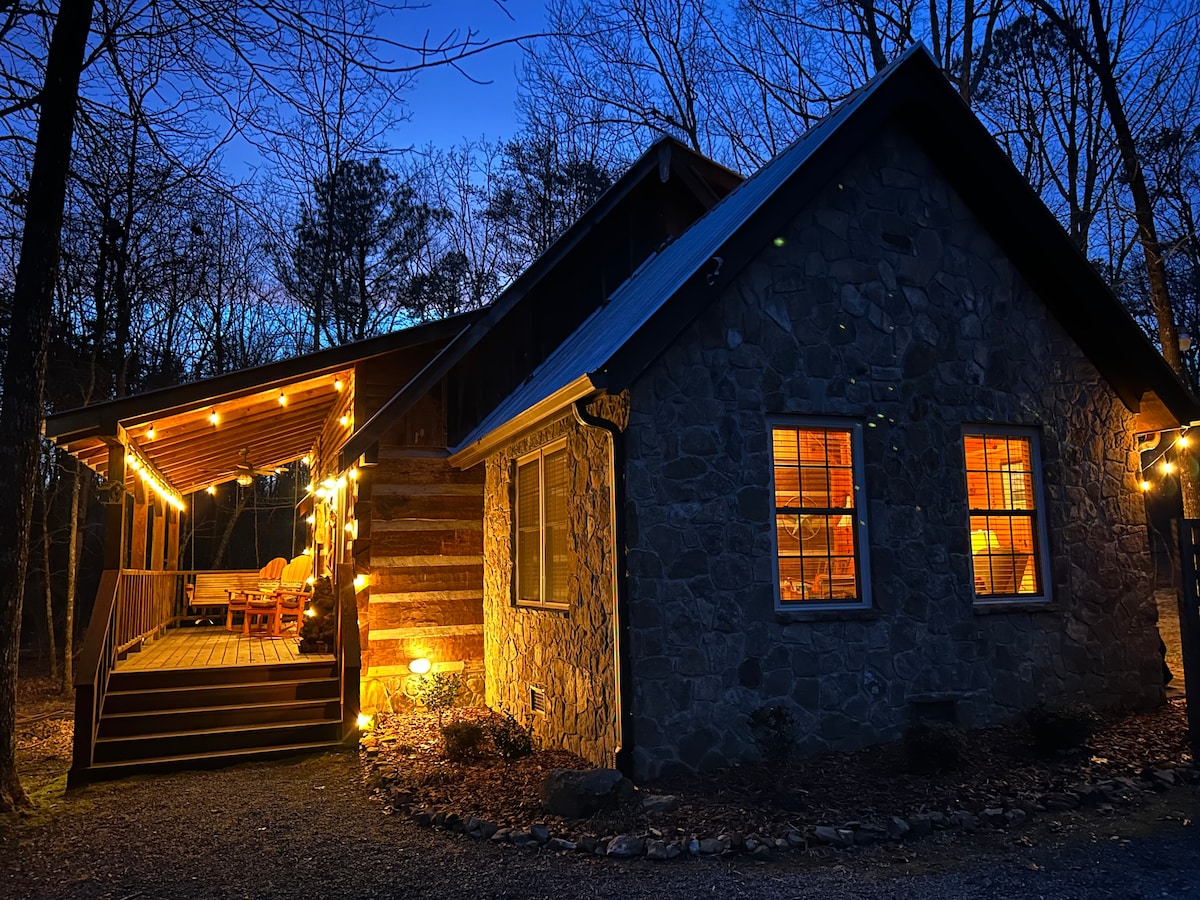 Rustic cabin in the woods nestled among giant boulders. Perfect for romantic getaways or small families. Open living area downstairs and large loft bedroom (sleeps 4), plus two decks and a screened-in porch. Pet friendly. Includes fireplace and outdoor fire pit. UPDATE - now has Air Conditioning! Conveniently nestled between DeSoto State Park & Falls, Little River Canyon and Mentone. 100% of your cleaning fee goes to our cleaners. Checkout is easy. Please note: steep indoor stairs.