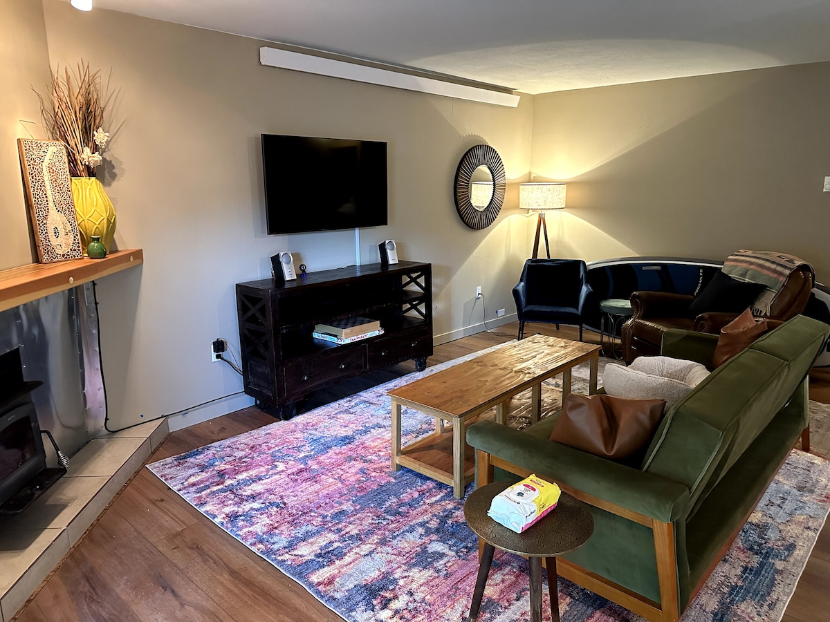 Opdag komfort og bekvemmelighed i vores underjordiske oase! Vores fuldt renoverede studie er centralt beliggende mellem skisportsstedet og centrum og er perfekt til dit Steamboat Springs-eventyr. Udstyret med et køkken i fuld størrelse, vaskemaskine/tørretumbler og dedikeret arbejdsstation, vil du føle dig hjemme! Bemærk, at denne bolig er under jorden og ikke har udsigt. Sæt en plade, dæmp lyset, og tænd en film, så er du klar til et hyggeligt ophold!