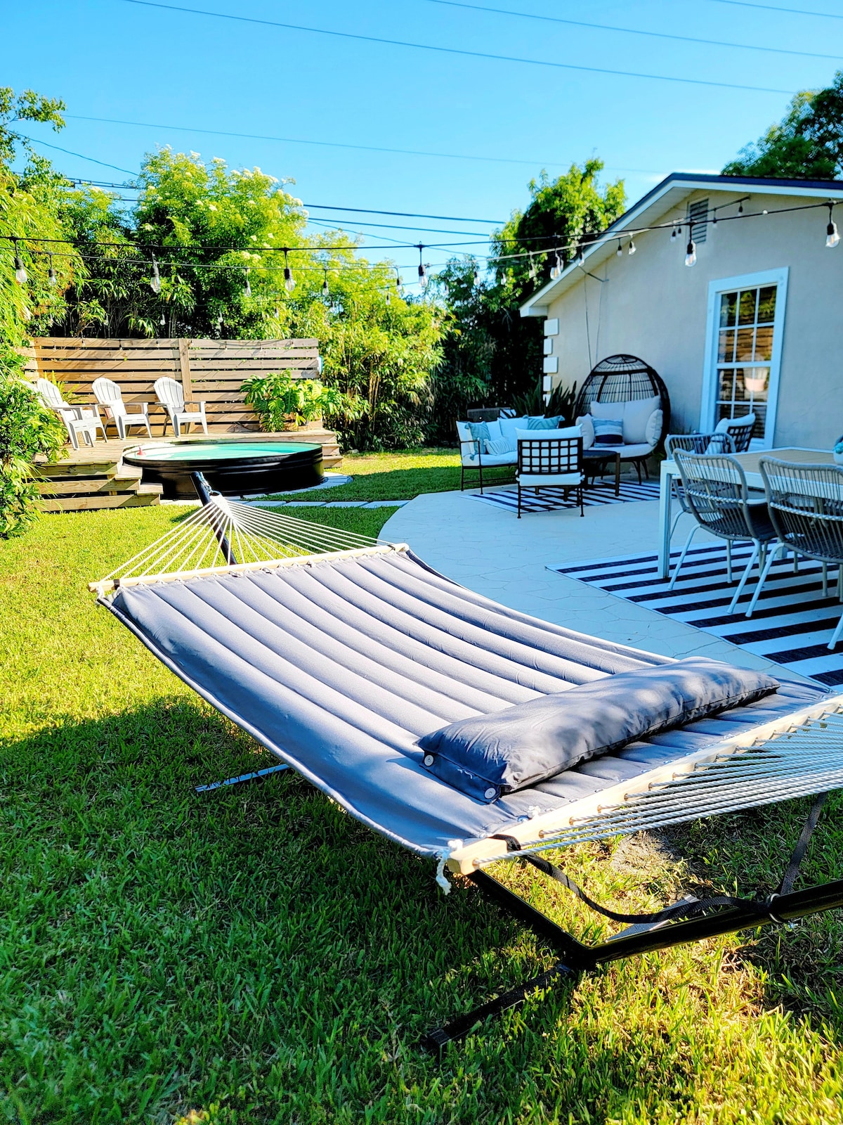 Din familie vil være tæt på alt, når I bor i denne centralt beliggende bolig. Minutter til store shoppingmuligheder og restauranter og kun 15 minutter til Jacksonville Beach. Kun 10 minutter til TIAA Bank Field for at se Jaguars eller nyde dine yndlingsbegivenheder. Boligen har en naturskøn baggård med udsigt over søen. Du kan sidde på fiskedækket eller slappe af på familiedækket. Hvis du kan lide at sejle i kajak, så gør det. Kom derefter tilbage for at nyde en dejlig aften med familie eller venner omkring bålstedet.