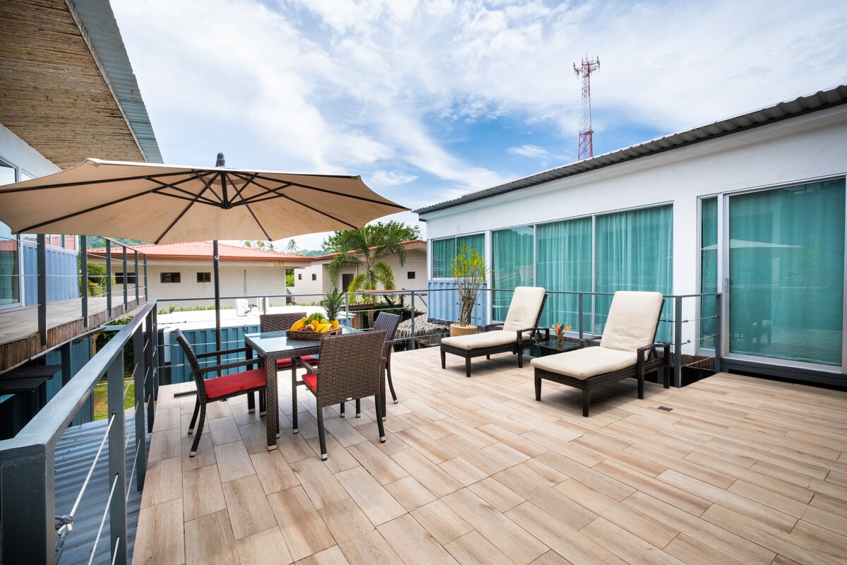 En god mulighed, hvis du rejser med din familie eller vennegruppe. Nyd det tropiske vejr, overvej en betagende udsigt og tilbring kvalitetstid med dine kære på vores fuldt renoverede suiter, kun fem minutter fra stranden. Dette rummelige værelse har to queensize-senge, madras i memoryskum og et fuldt udstyret udendørs køkken. Der gælder særlige priser, hvis du booker mere end tre nætter. Plads til op til 5 [maks. 3 voksne] *Forbindende værelser og enkeltseng til rådighed efter anmodning