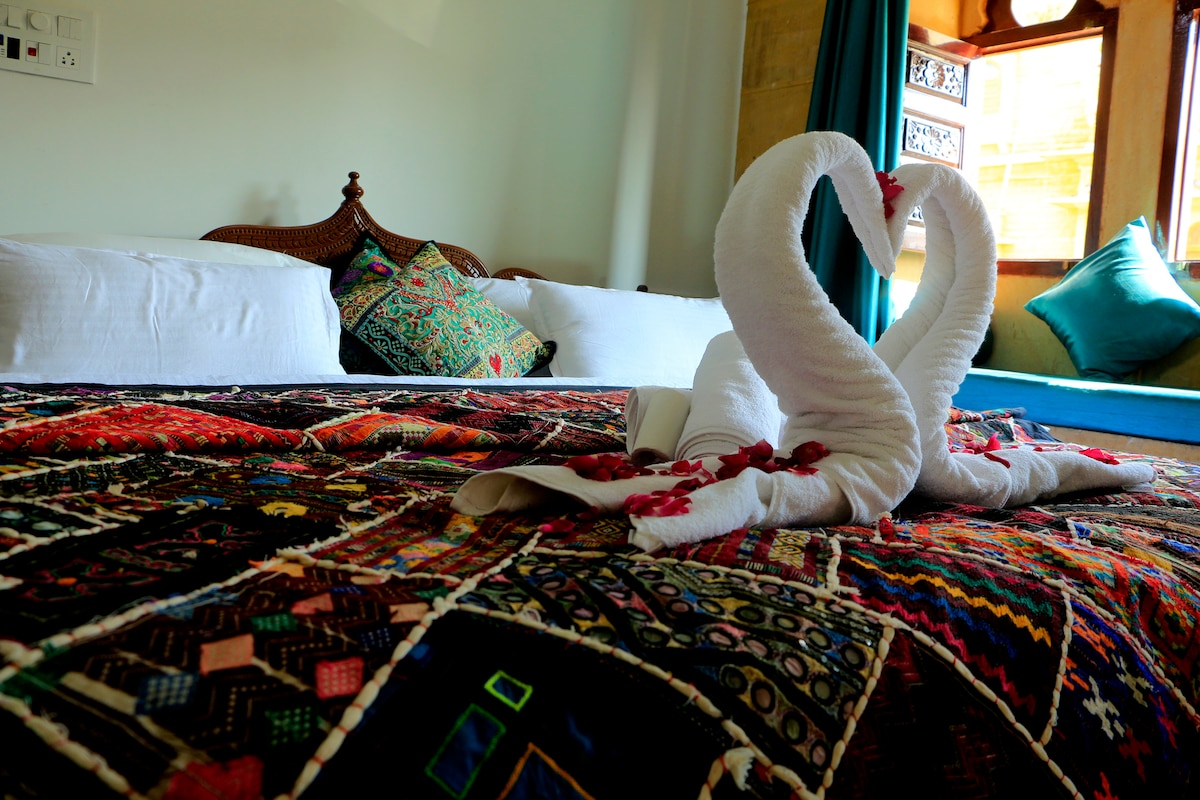 Vi er et lykkeligt gift engelsk-indisk par, der driver denne Airbnb-oplevelse i hjertet af Jaisalmer. Dette smukke værelse med eget badeværelse har superrent sengetøj, friske hvide håndklæder og et funklende badeværelse ! Der er også et opholdsområde med tv, så du kan slappe af og slappe af. Det ligger i en stille sidegade tæt på Fortet, ørkenen, Patwon Havelli og andre vigtige turistattraktioner. Vi har en fantastisk tagrestaurant og arrangerer også utrolige kamelsafarioplevelser.